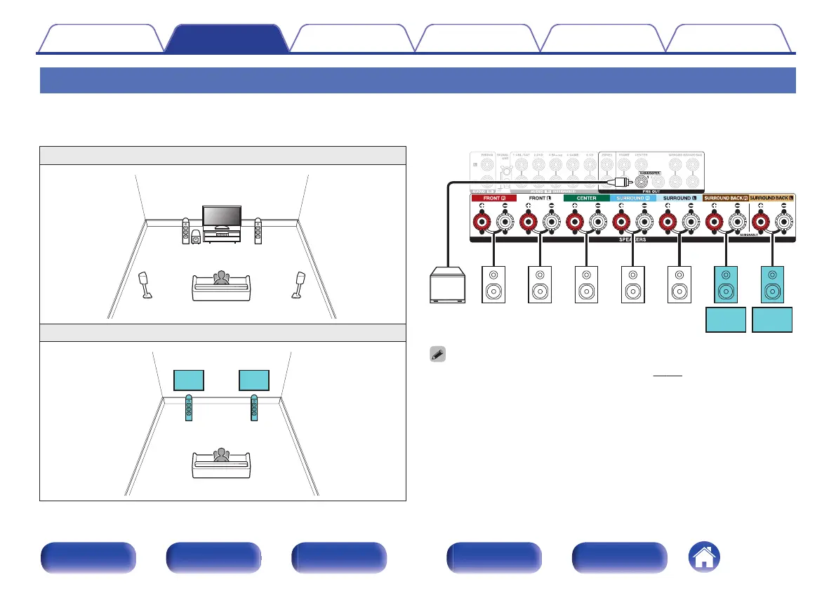 5.1-channel (MAIN ZONE) + 2-channel (ZONE2) speaker connection