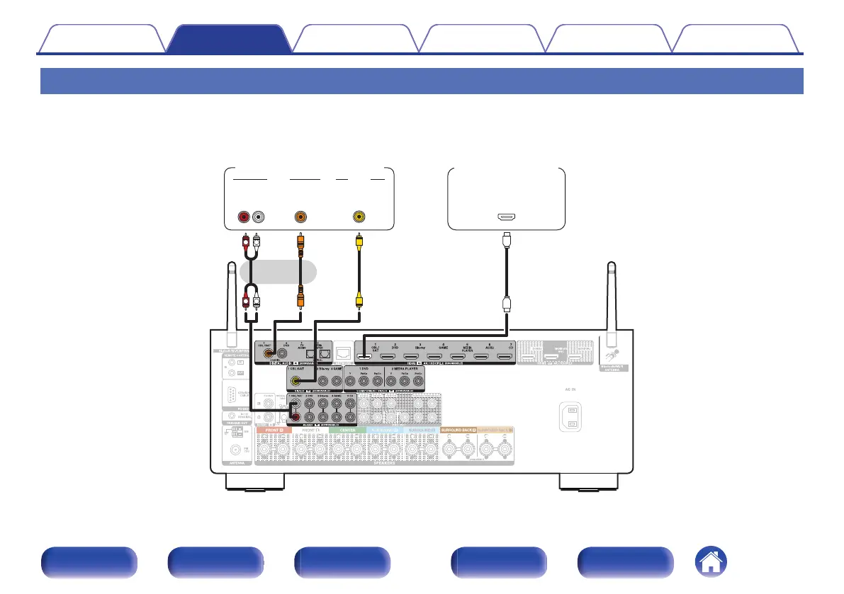 This explanation uses the connection with a satellite tuner/cable TV STB as an example.