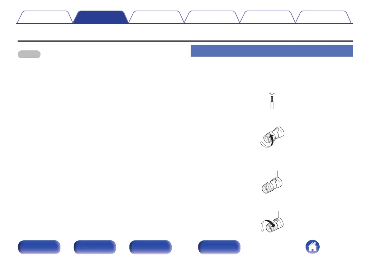 Connect so that the speaker cable core wires do not protrude from the speaker