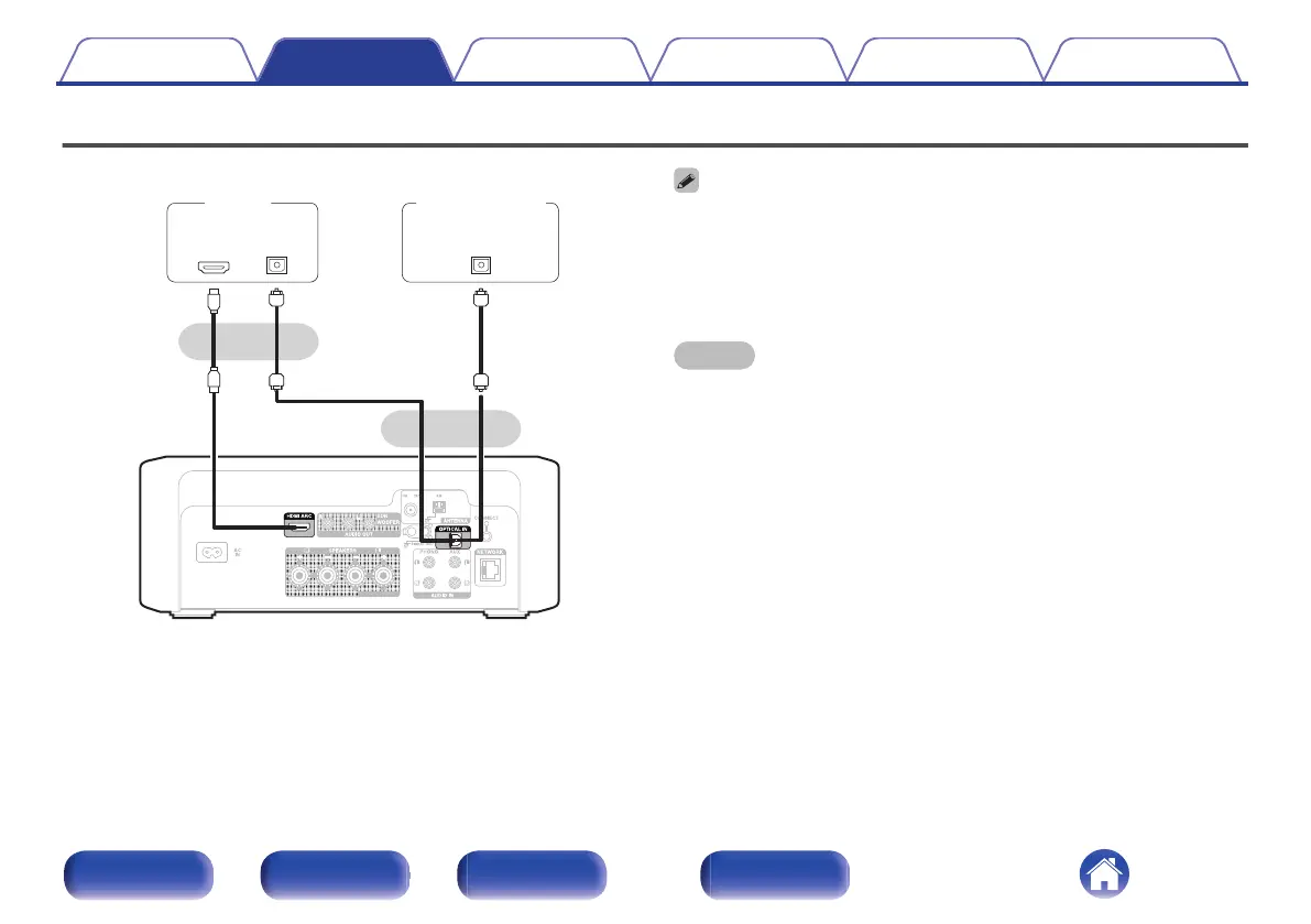 When connecting to a TV that does not support the ARC function, use an Optical