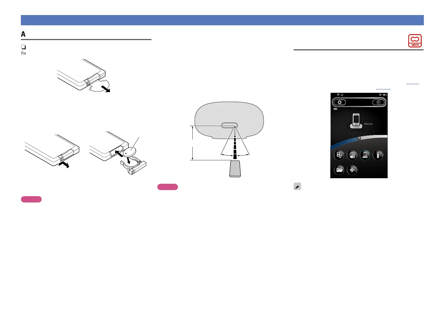 •Insert the specified batteries in the remote control unit.