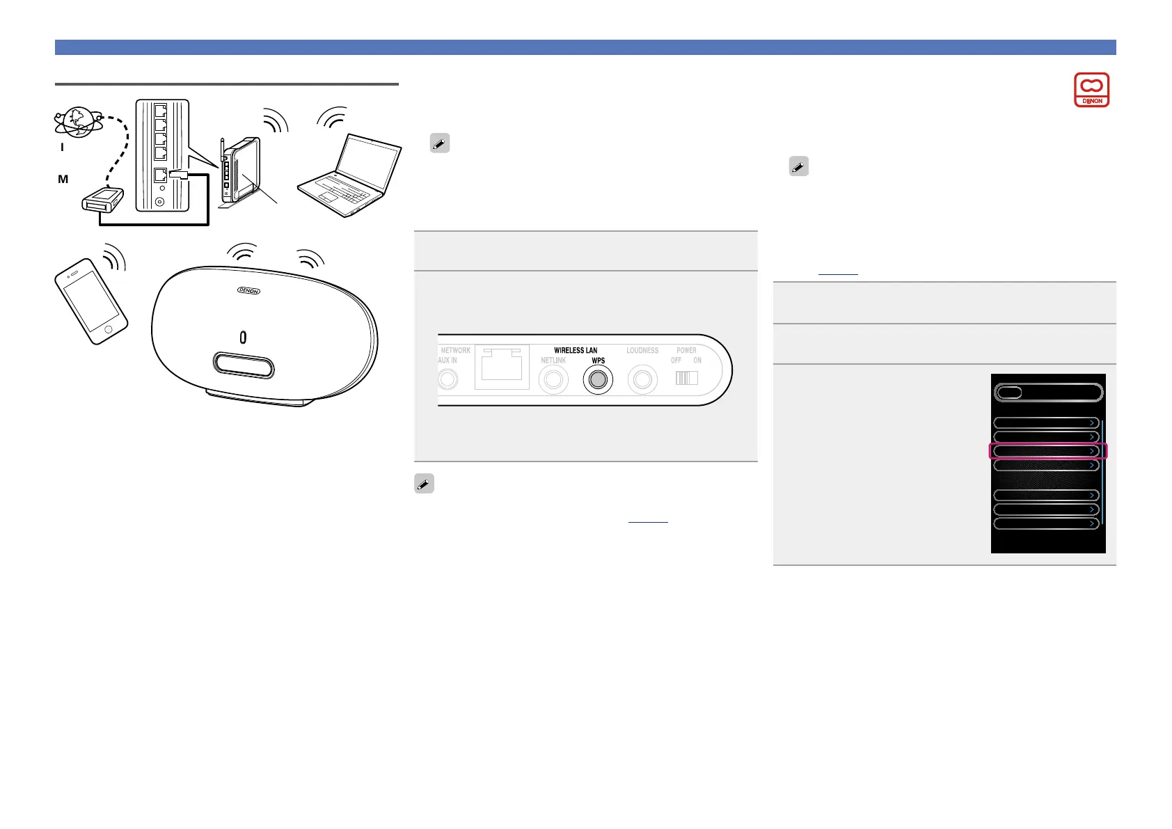 Use the DENON application “Cocoon App” to make the wireless