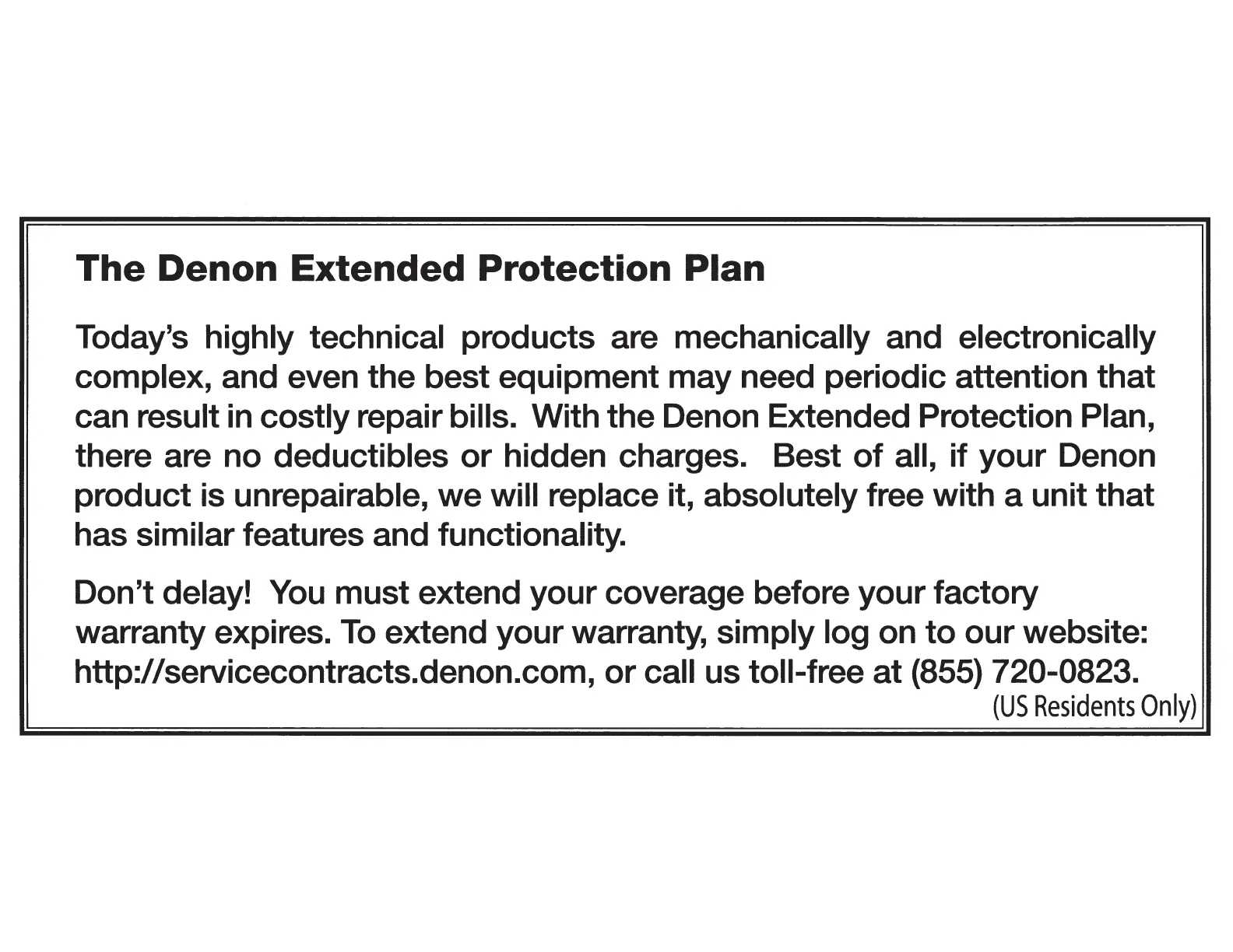 result in costly repair bills. With the Denon Extended Protection Plan,