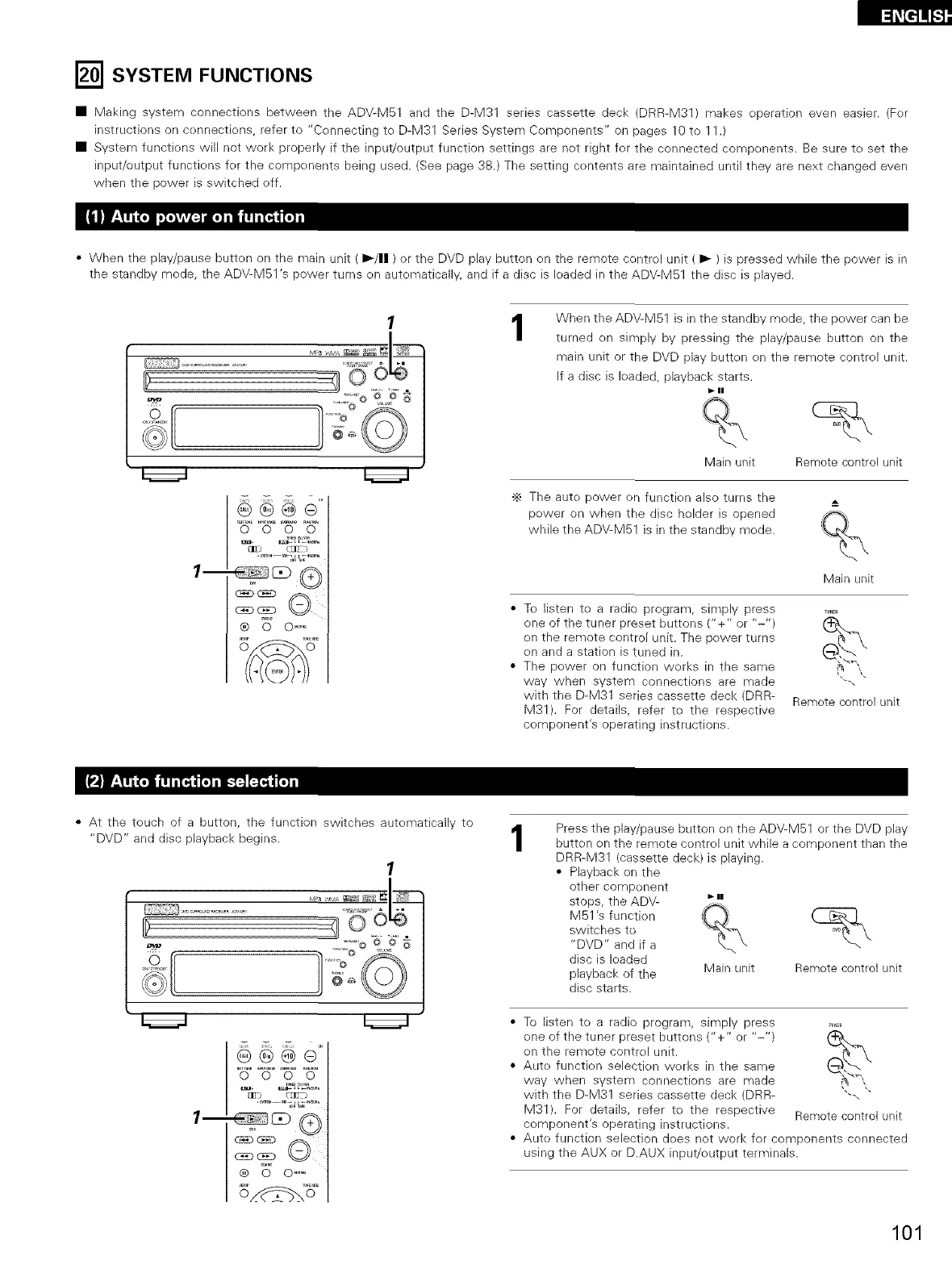 • Making system connections between the ADV-M51 and the D-M31 series cassette deck (DRR-M31) makes operation even easier. (Fer
