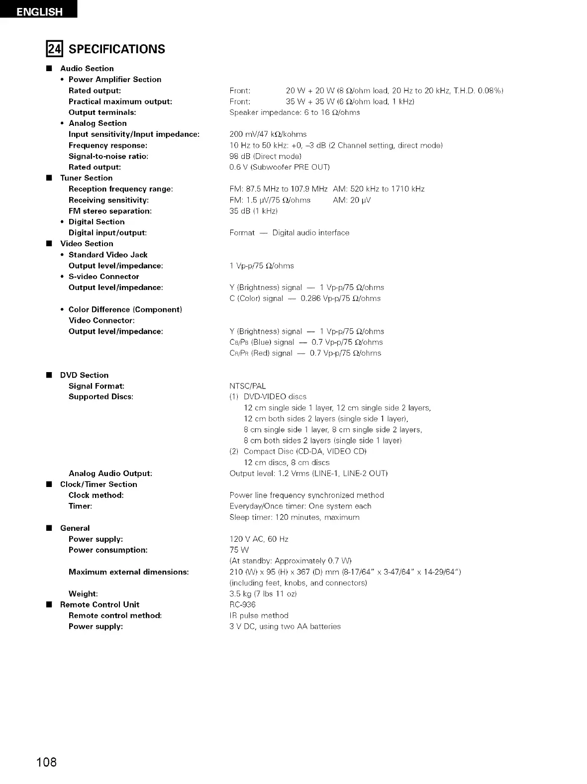 Front: 20 W + 20 W (8 _-_/ehm load, 20 Hz to 20 kHz, T.H.D. 0.08%)
