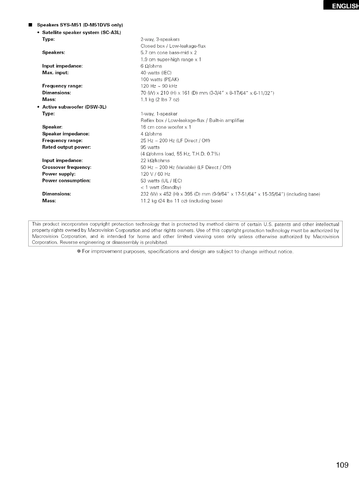 • Active subwoofer (DSW-3L)