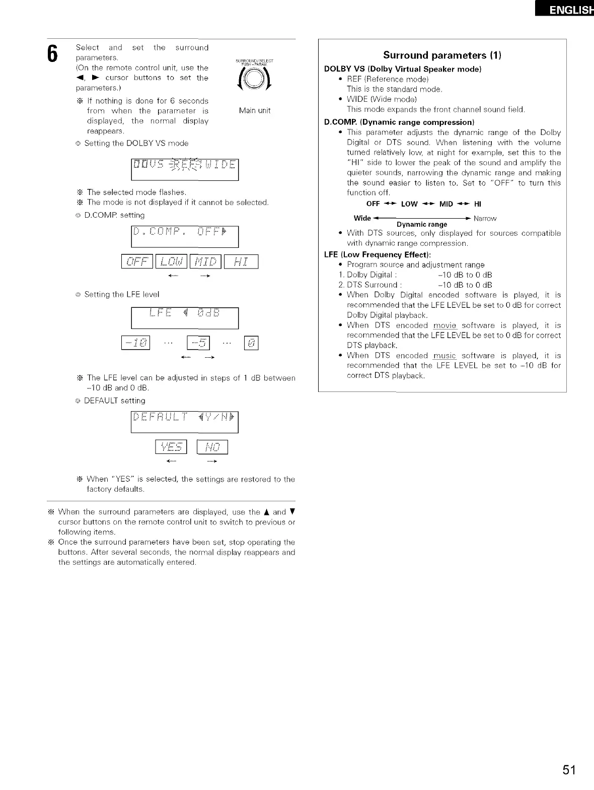 •_ The LFE level can be adjusted in steps of 1 dB between