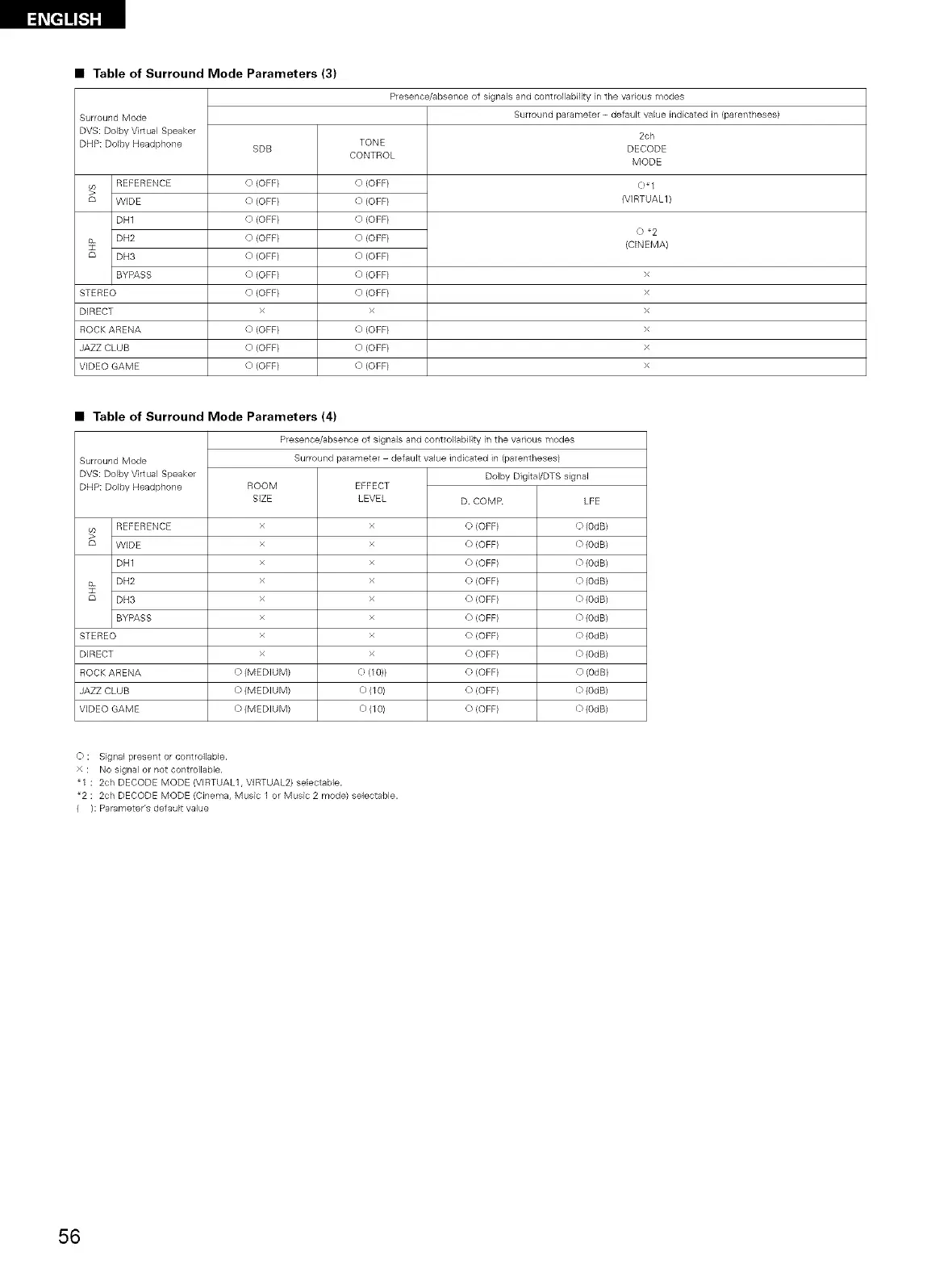 • Table of Surround Mode Parameters (4)