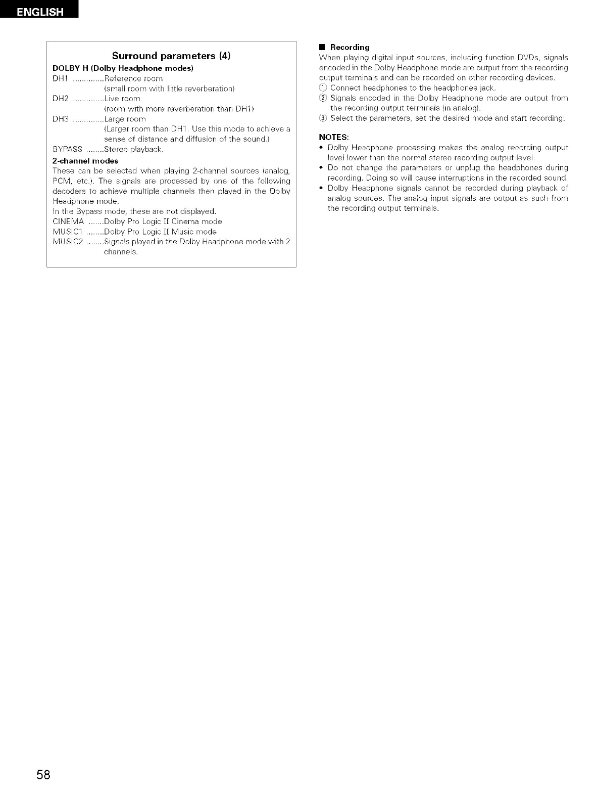 MUSIC1 ........ Dolby Pro Logic II Music mode