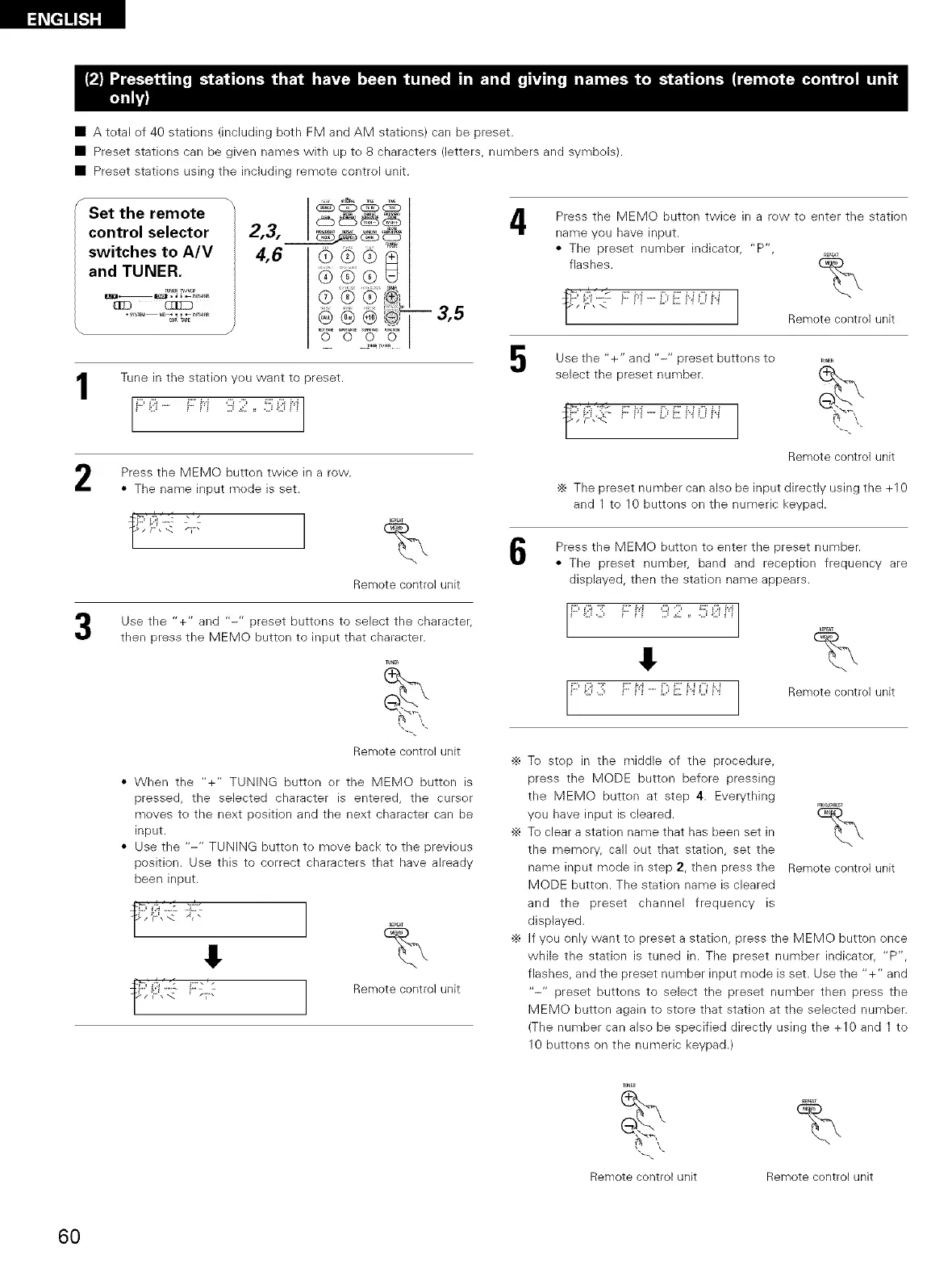 • Preset statiens can be given names with up to 8 characters (letters, numbers and symbols).