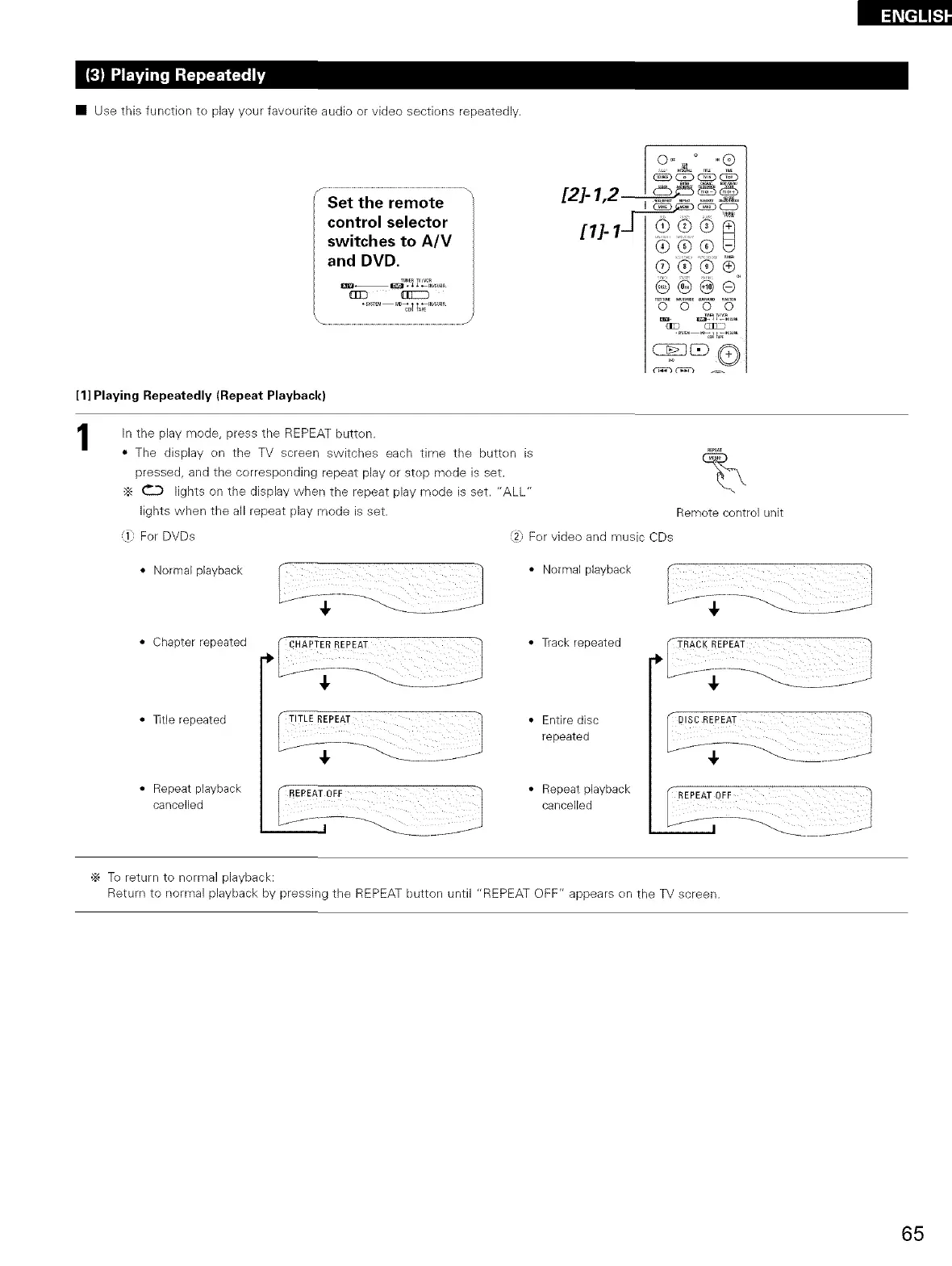 Return to normal playback by pressing the REPEAT button until "REPEAT OFF" appears en the TV screen.
