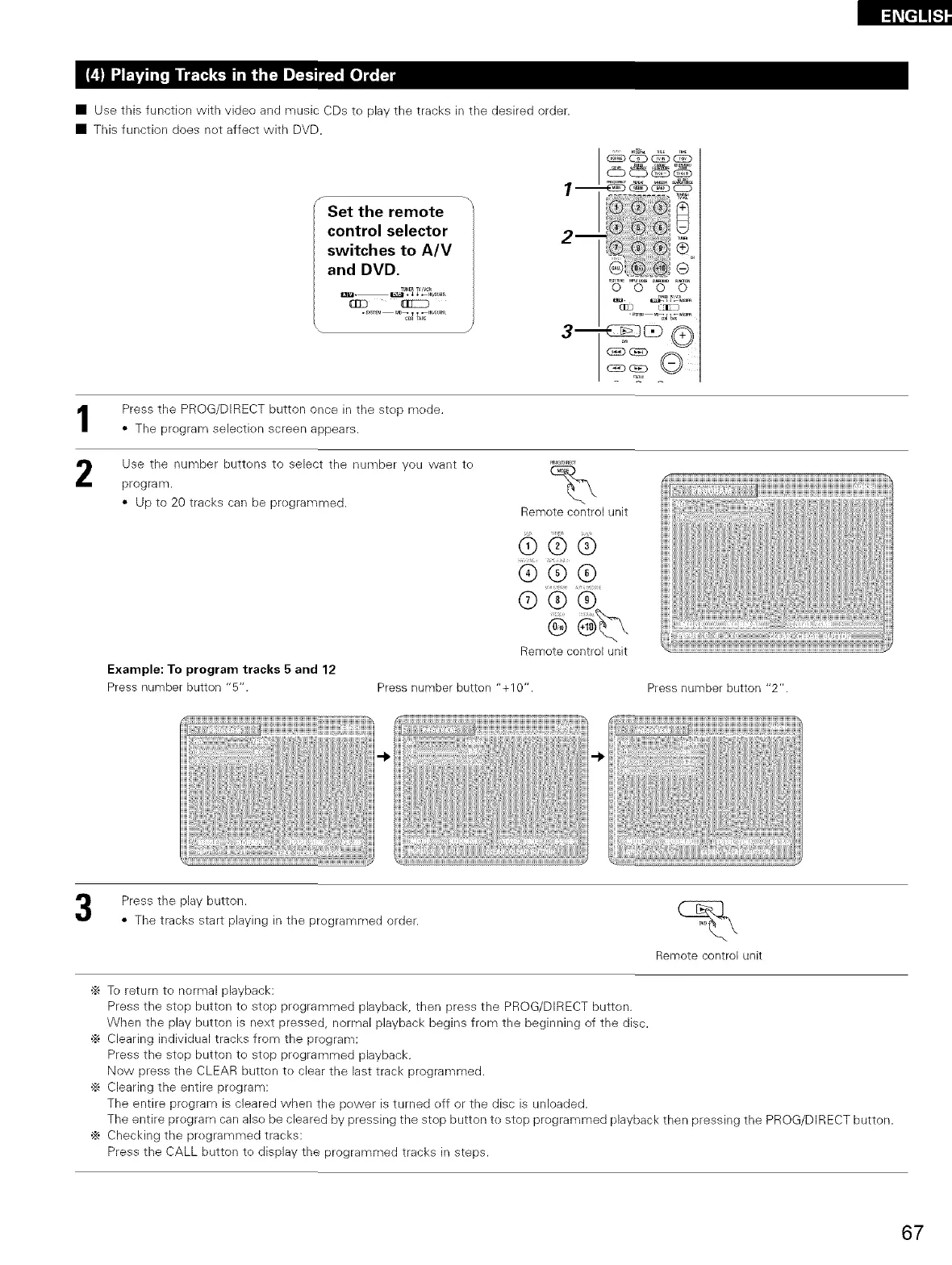 • Use this function with video and music CDs to play the tracks in the desired order.