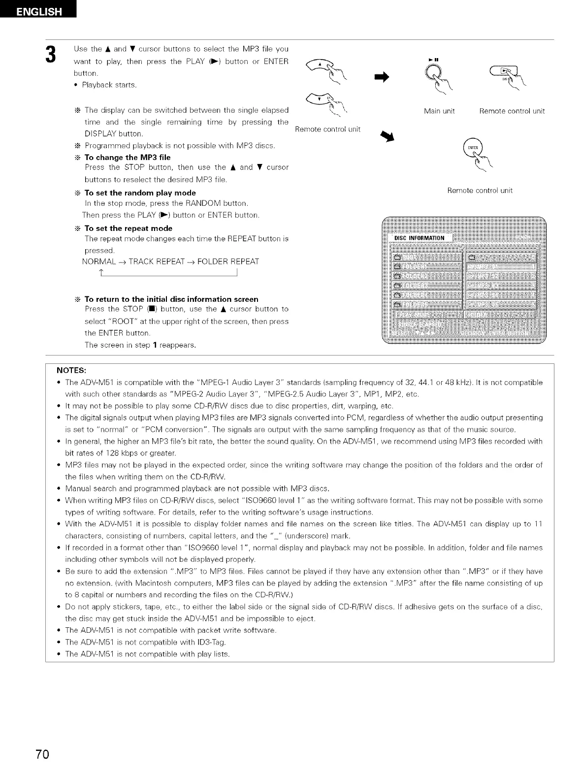 • The ADV-M51 is not compatible with ID3-Tag.