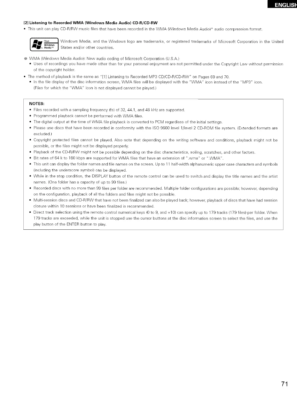 • This unit carl play CD-R/RW music files that have been recorded in tile WMA (Windows Media Audio) _ audio compression format.