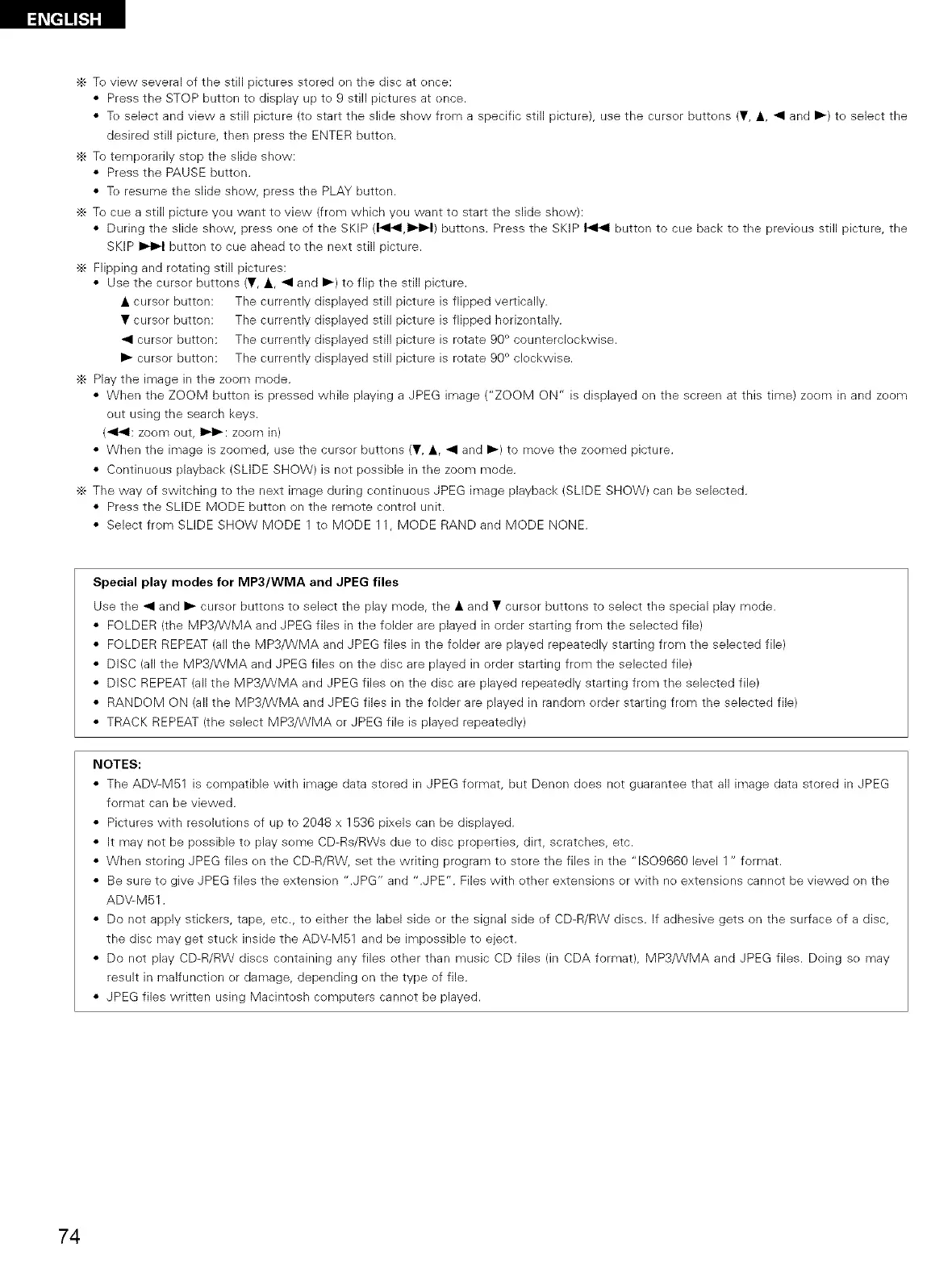 • The ADV-M51 is compatible with image data stered in JPEG format, but Denon dees net guarantee that all image data stored in JPEG