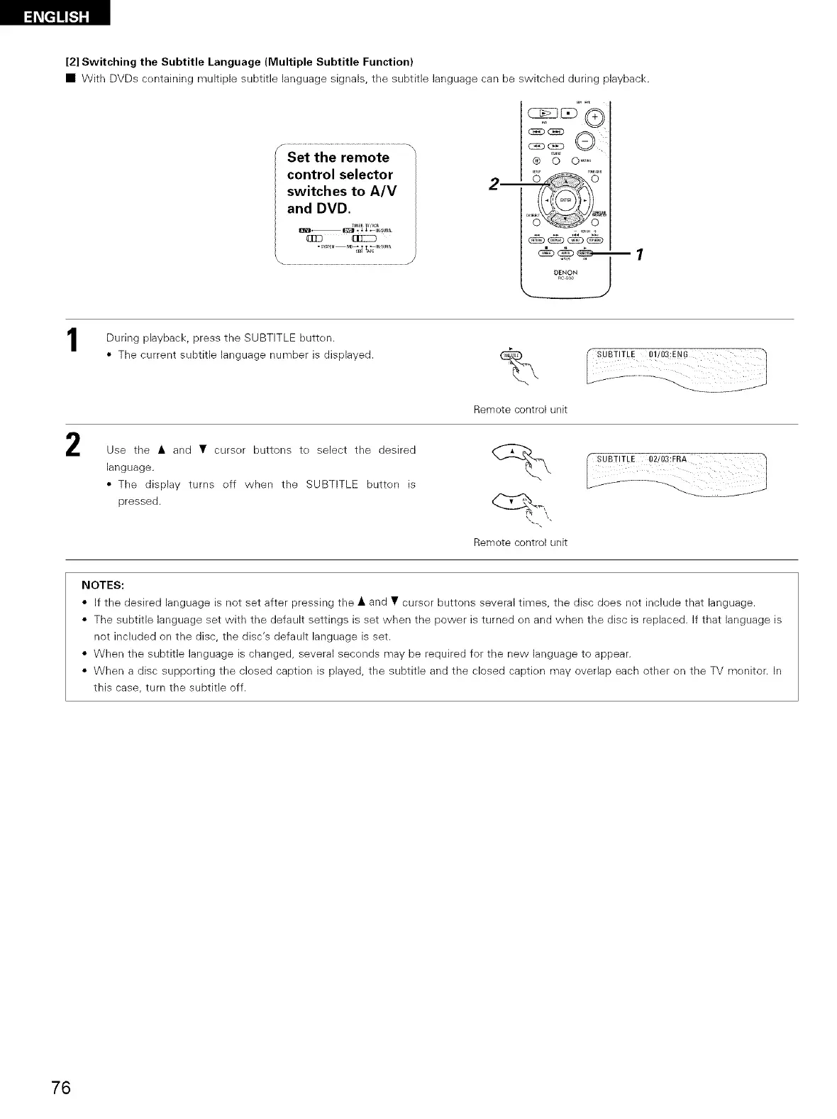 • When the subtitle language is changed, several seconds may be required for the new language to appear.