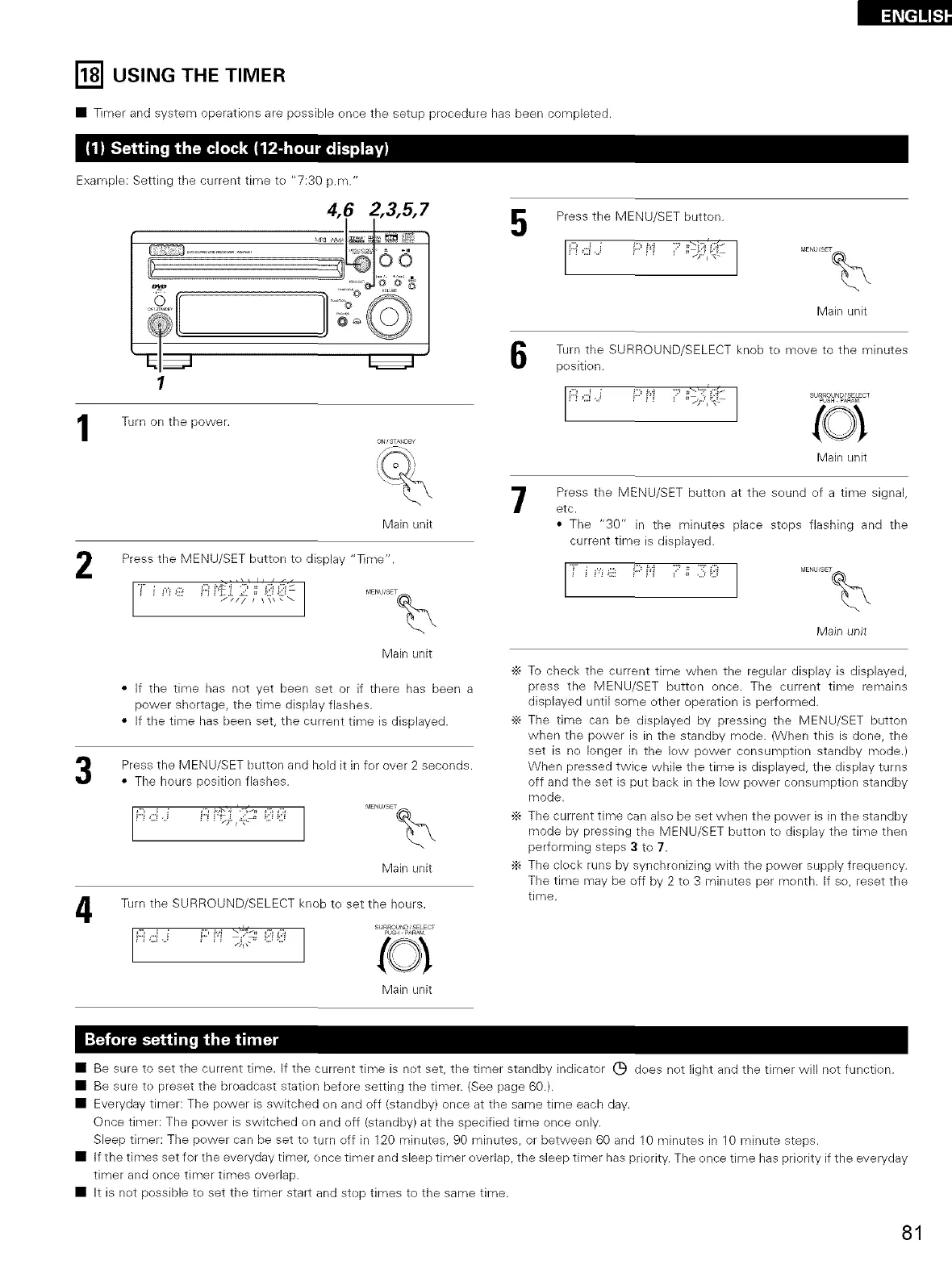 • Be sure to preset the broadcast station before setting the timer. (See page 60.).