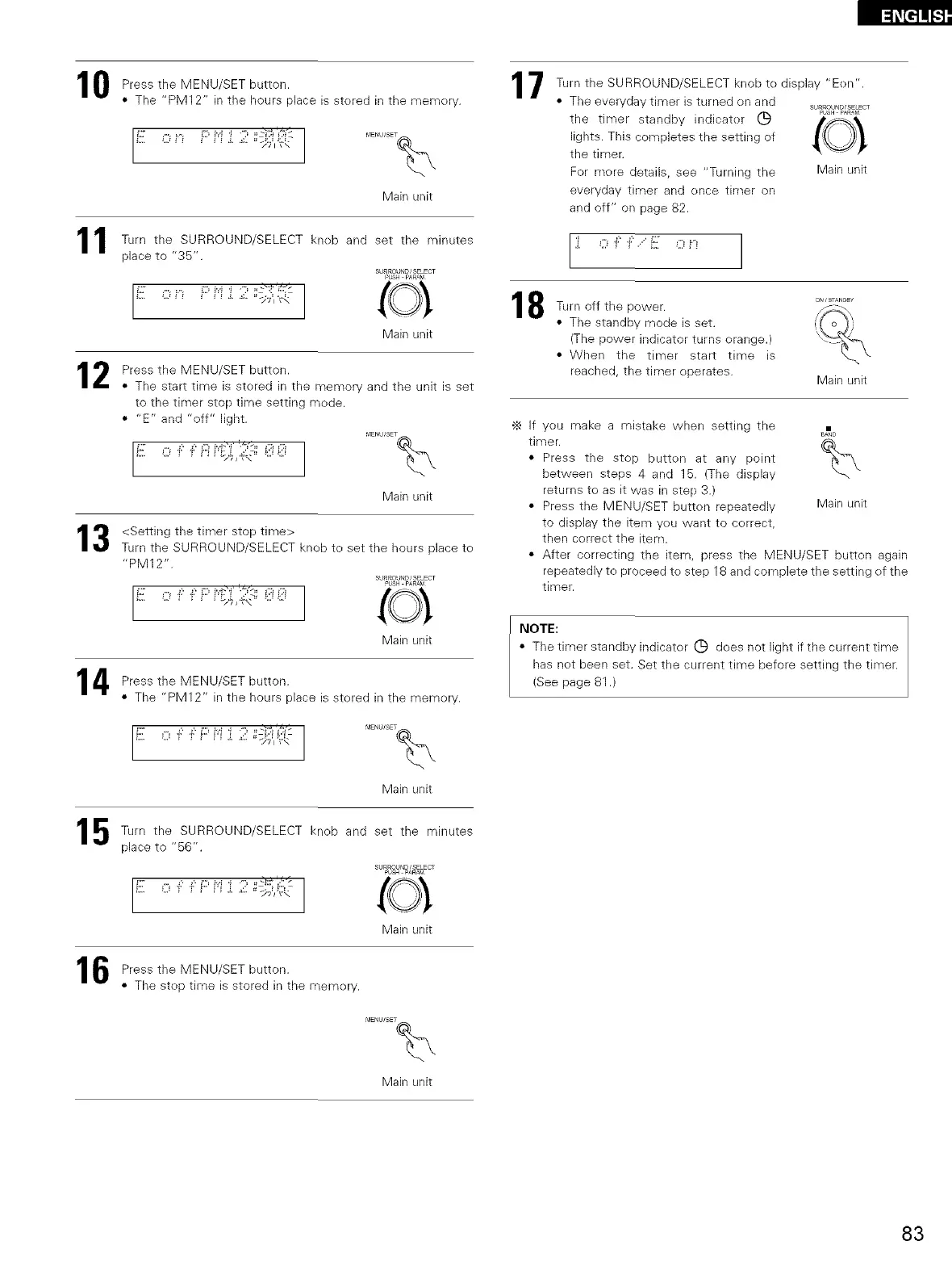 • Press the MENU/SET button repeatedly Main unit