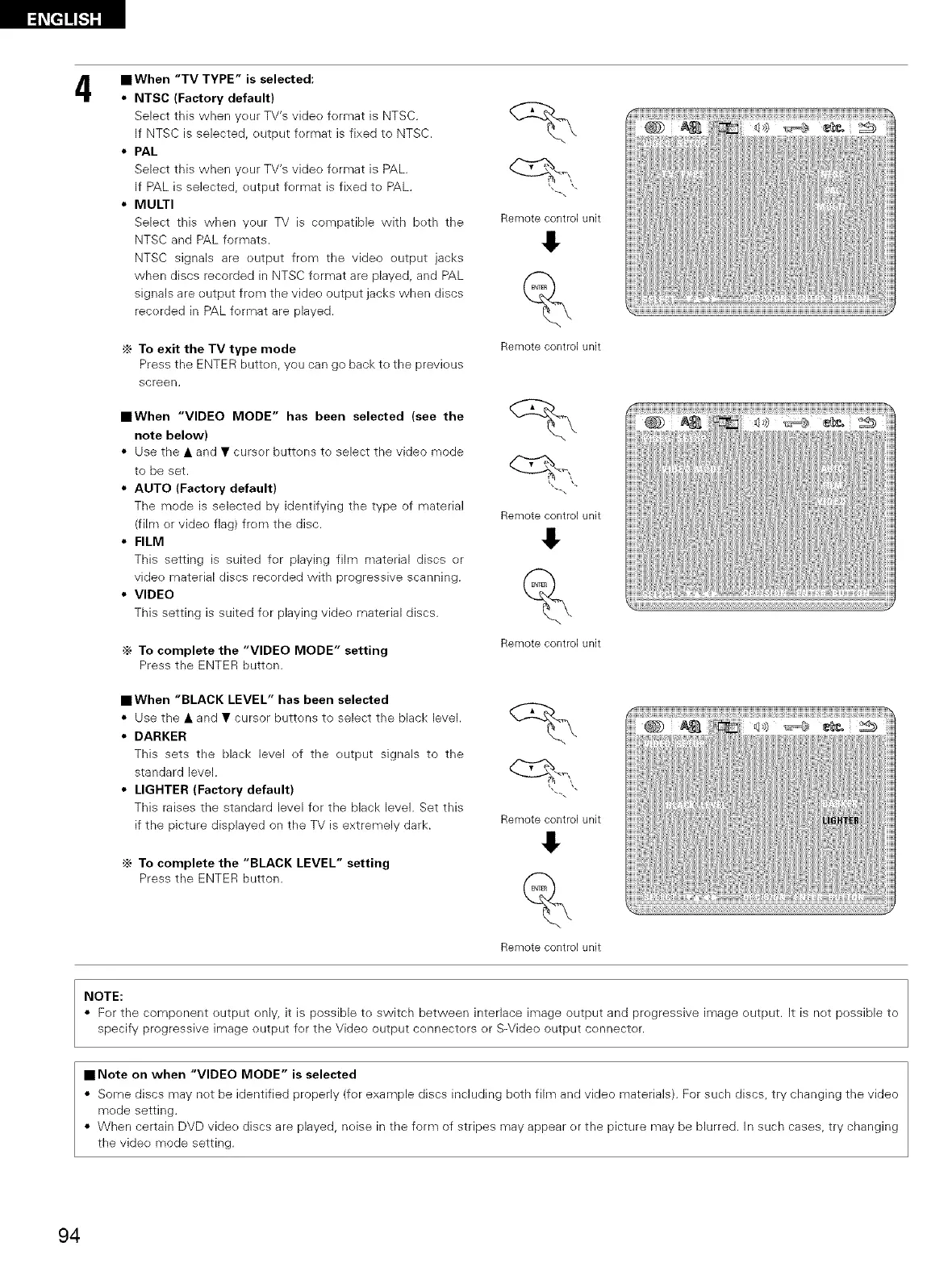 • When certain DVD vide() discs are played, noise in the form of stripes may appear or the picture may be blurred. In such cases, try changing