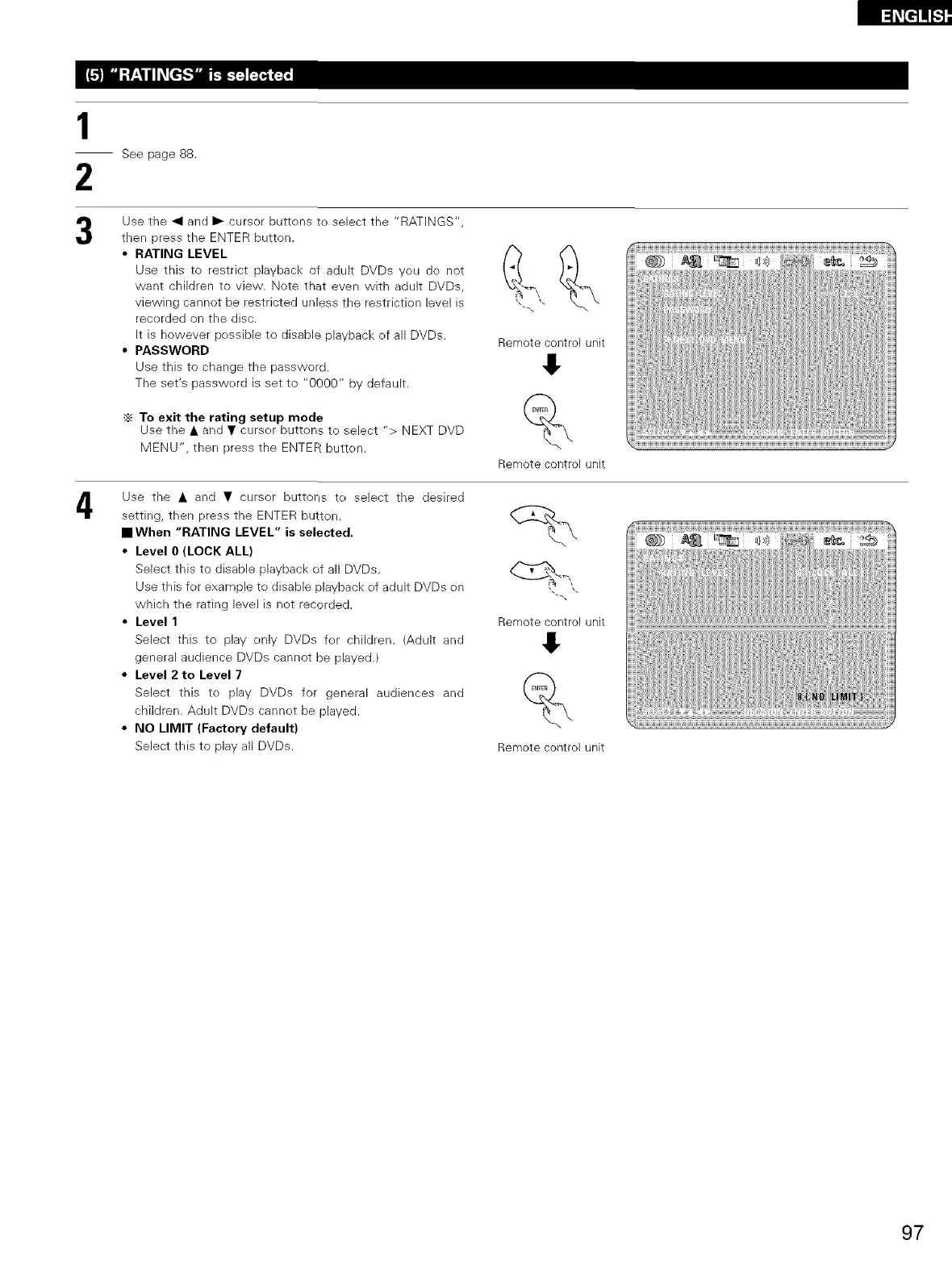 Use the 41 and I_ cursor buttons to select the "RATINGS",