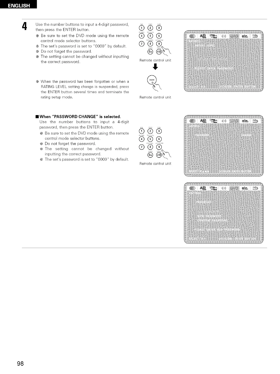•_ Be sure to set the DVD mode using tile remote