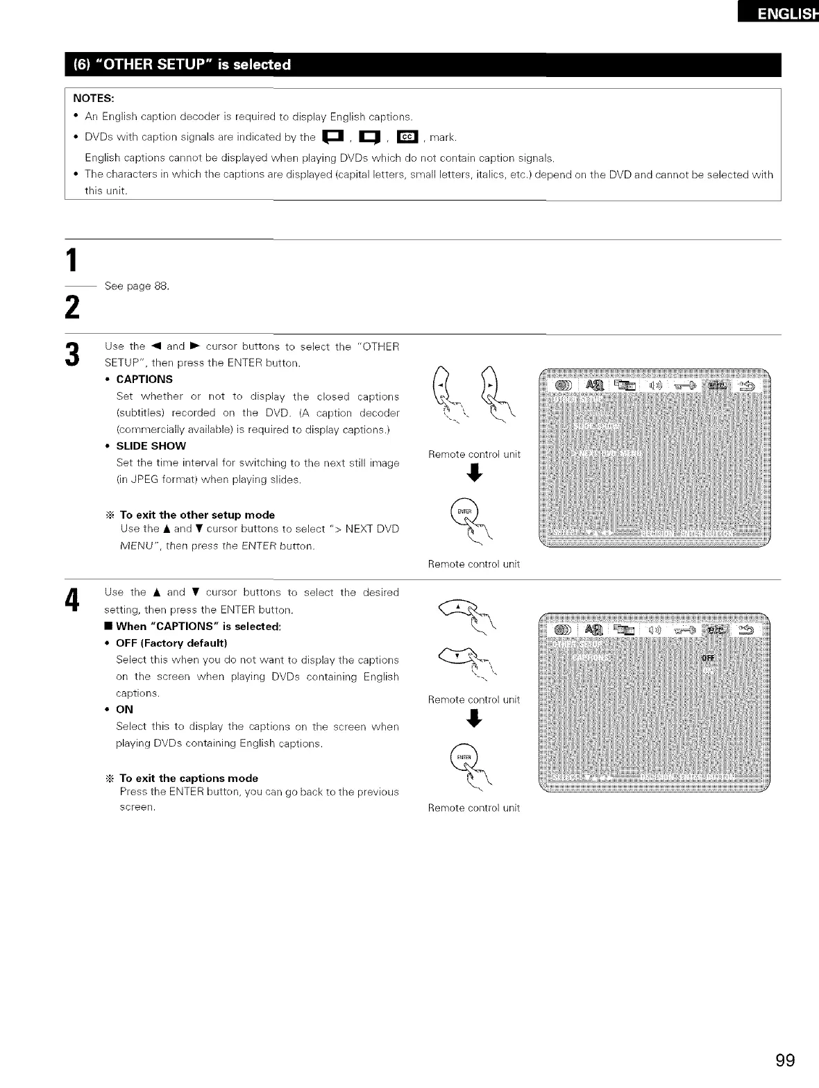 English captions cannet be displayed when playing DVDs which de not contain caption signals.