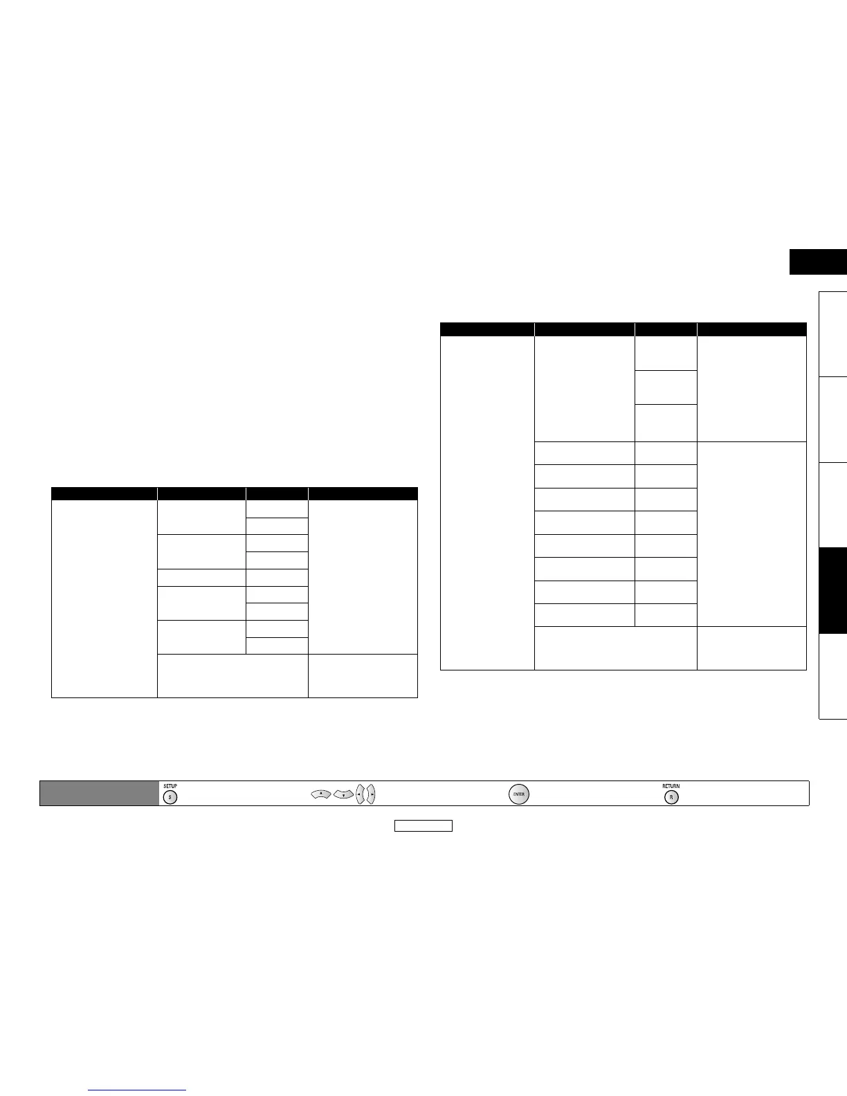 Menu Setting items Options Descriptions