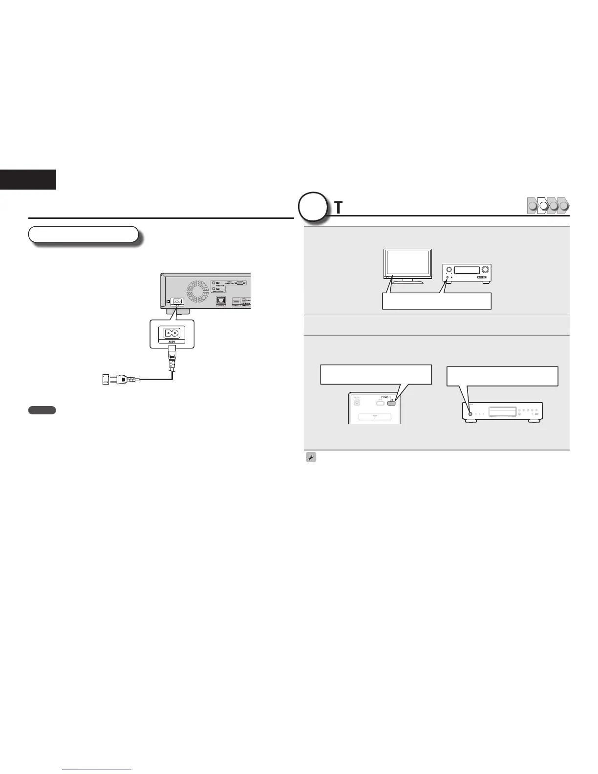 •Be sure to insert the power plug firmly. Incomplete connection results in noise.