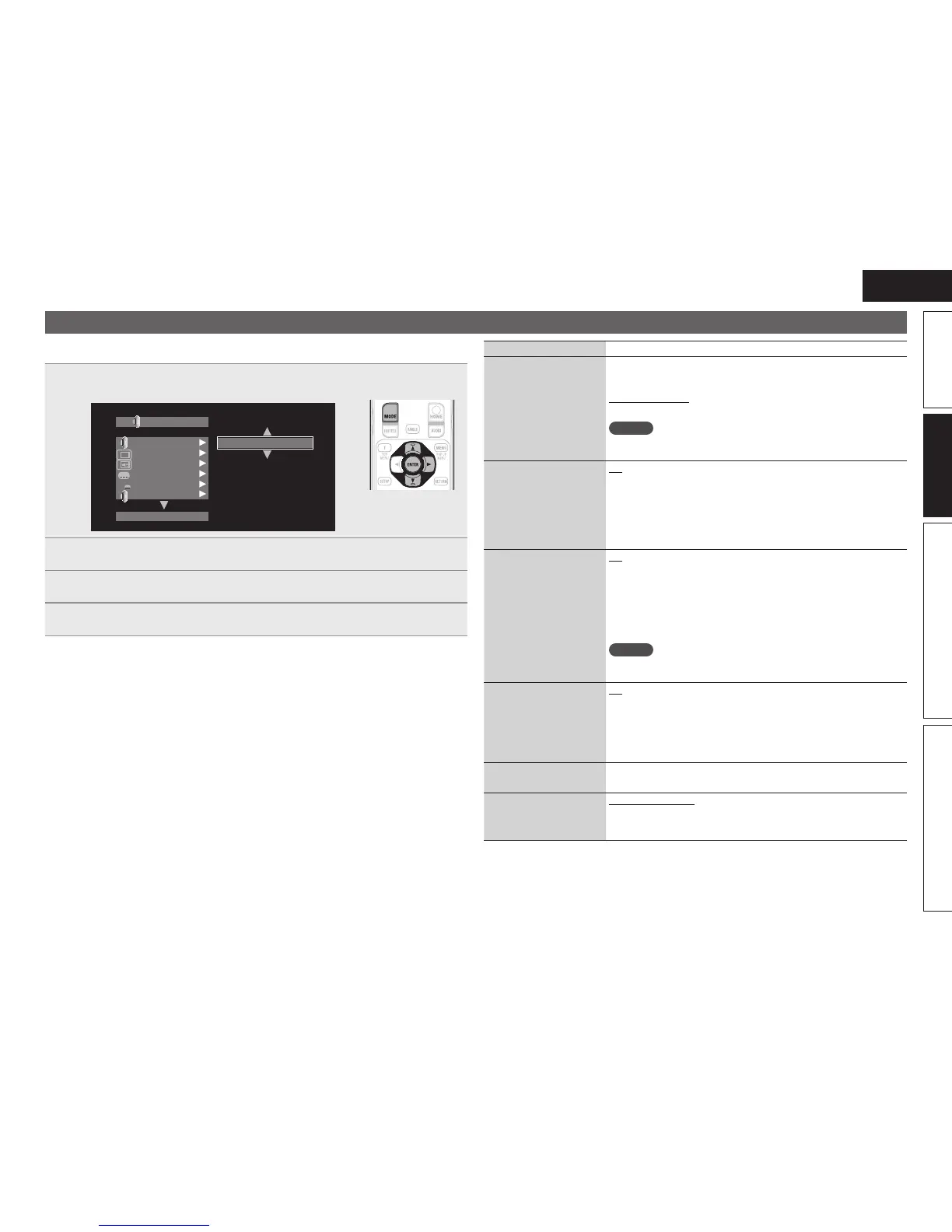 Select a setting item using ui, and then press ENTER or p.