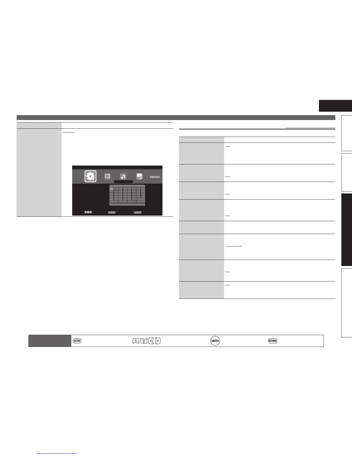 DENON 1 : Selects DENON 1. Set to “DENON 1” also on the remote