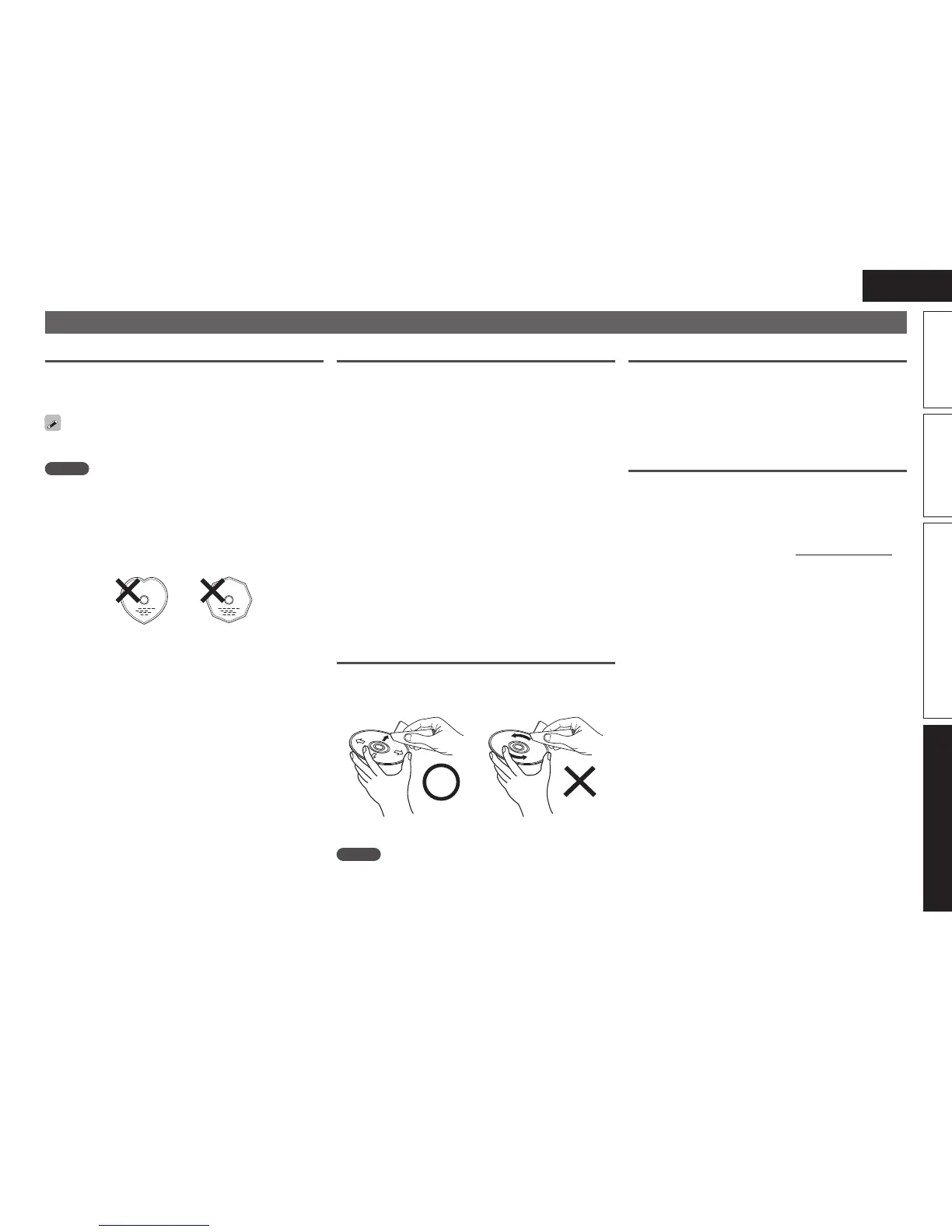 •Do not use discs on which the sticky part of cellophane tape or labels