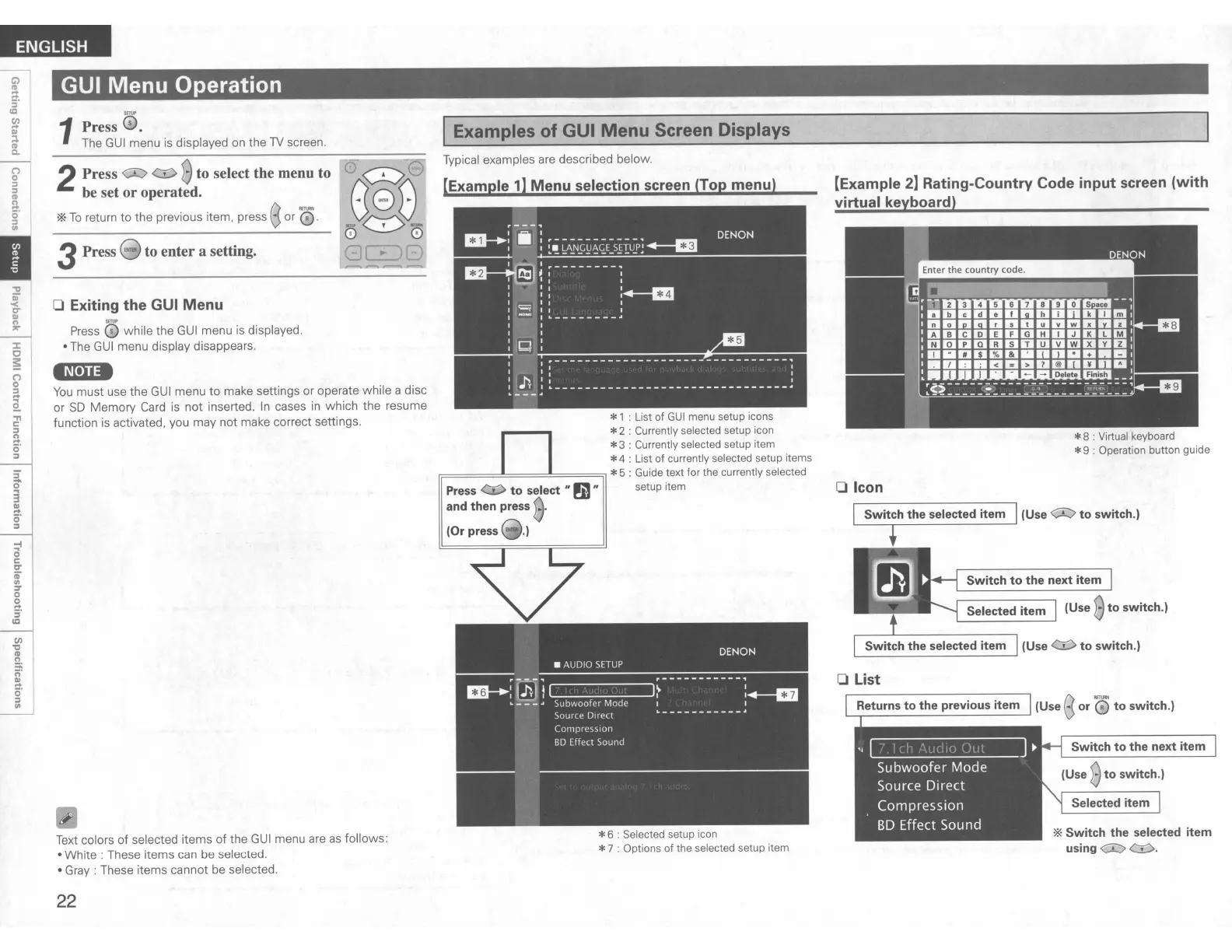*3 : Currently selected setup item