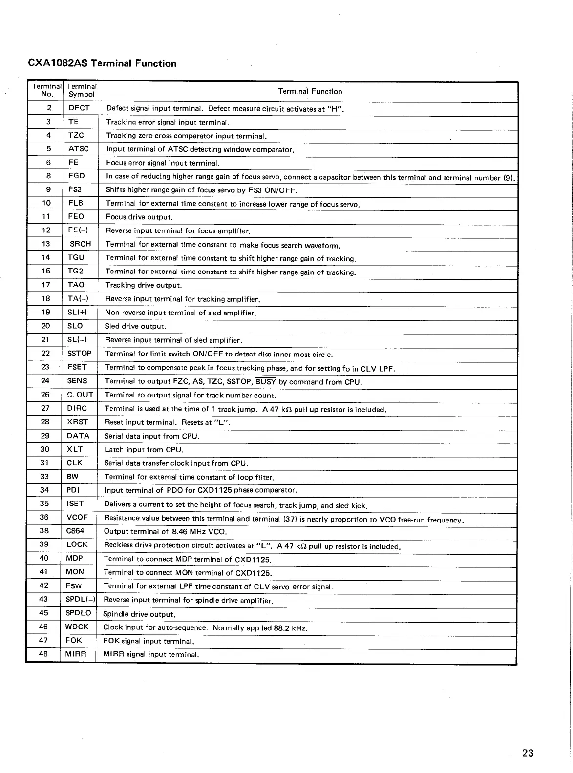 Denon DCD-1400 - CXA1082 AS TERMINAL FUNCTIONS