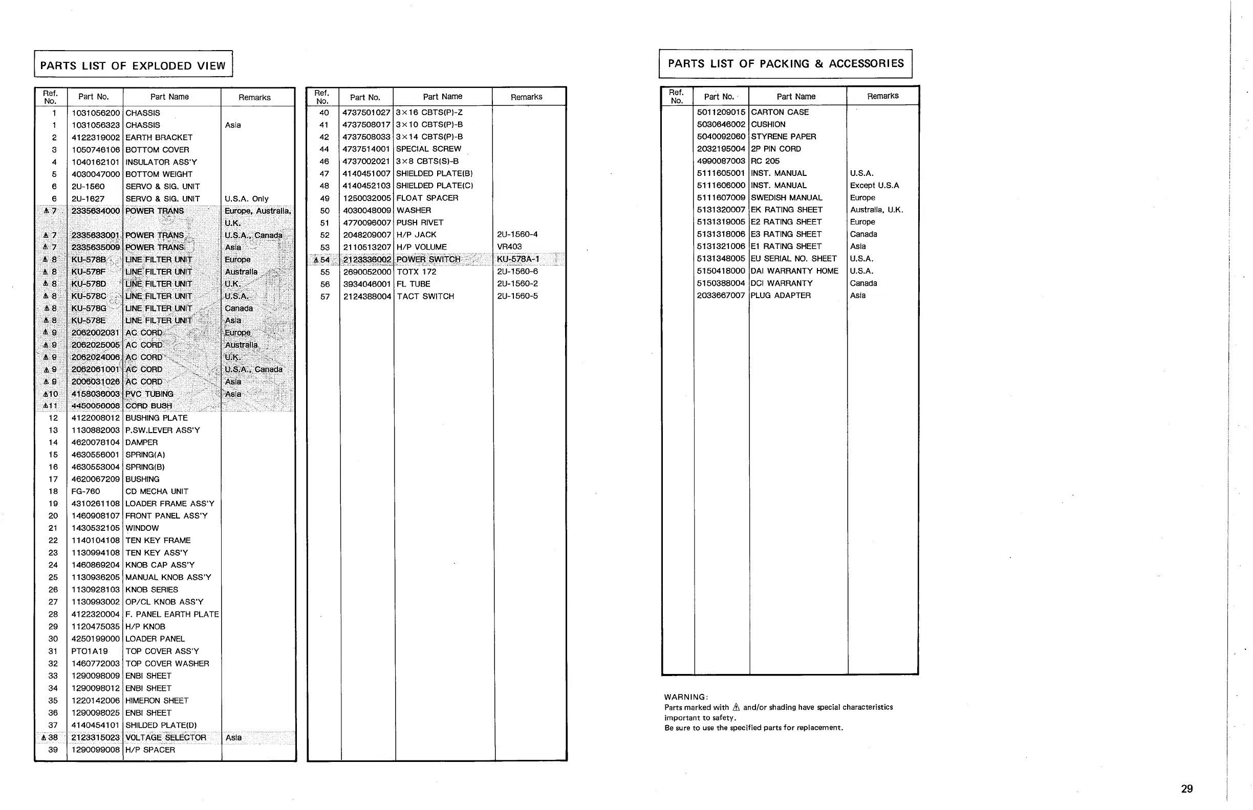 Denon DCD-1400 - Parts List of Exploded View; Parts List of Packing & Accessories