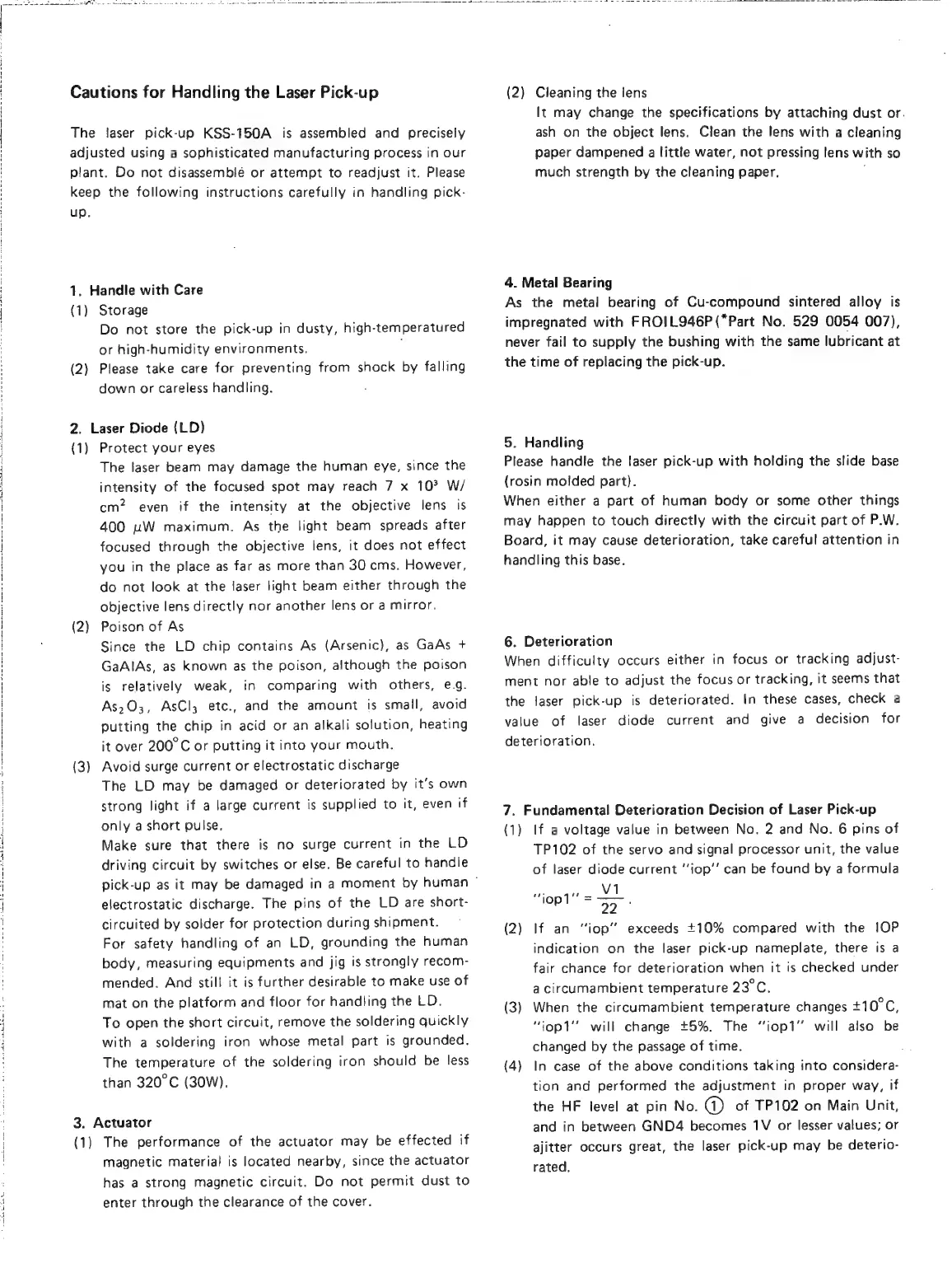 Denon DCD-1420 - Laser Pick-up Handling Cautions; General Handling and Storage; Laser Diode Safety; Component Specific Cautions