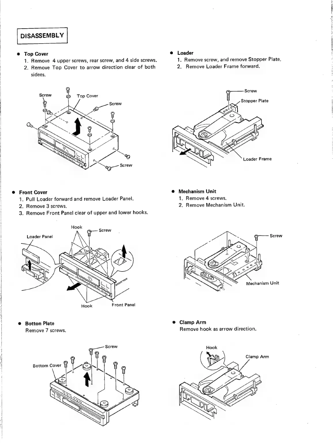 Denon DCD-1420 - Disassembly Procedures; Chassis Component Removal; CD Mechanism Disassembly