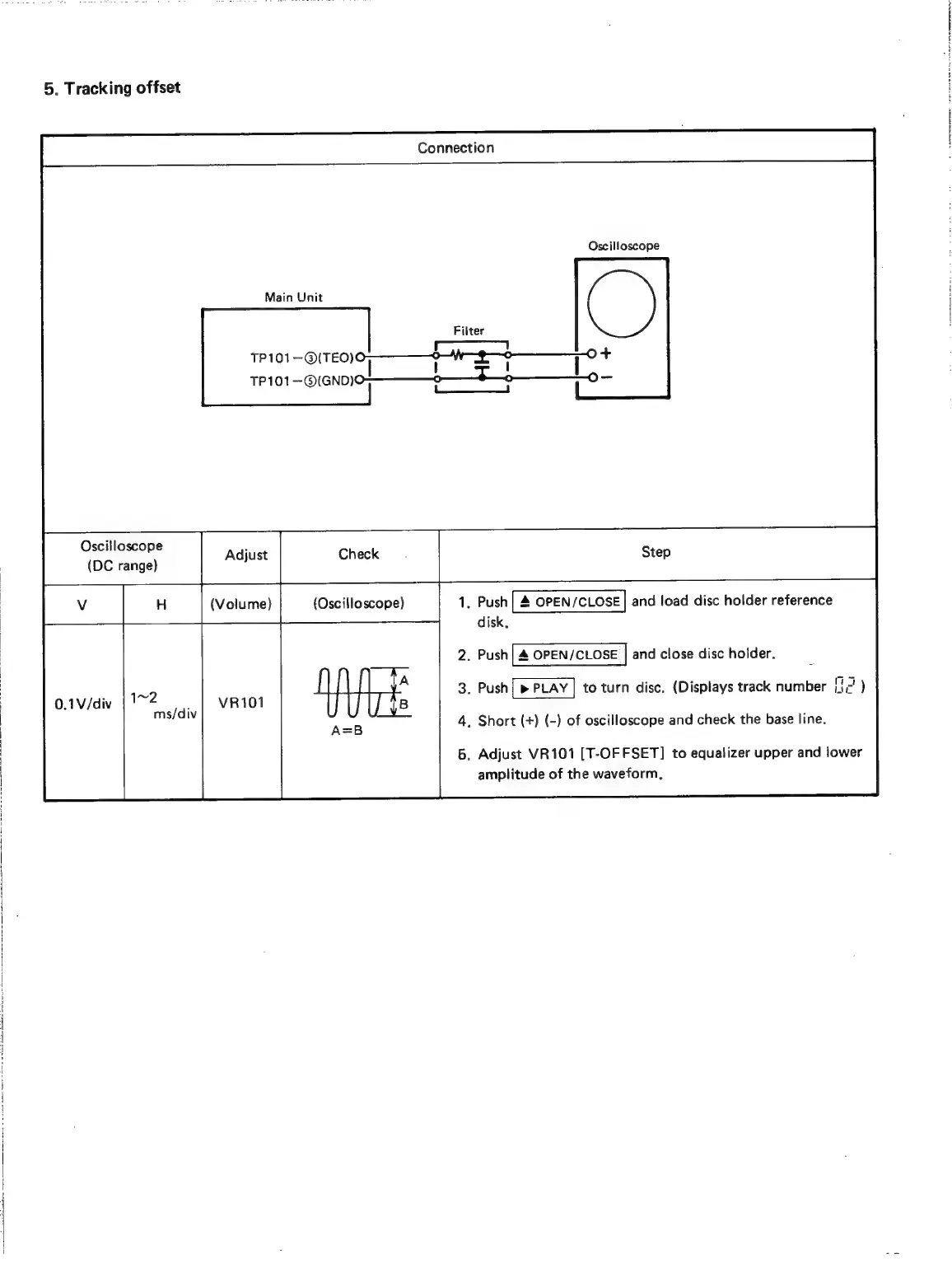 Denon DCD-1420 - Tracking Offset Adjustment; VR101 Tracking Offset Adjustment
