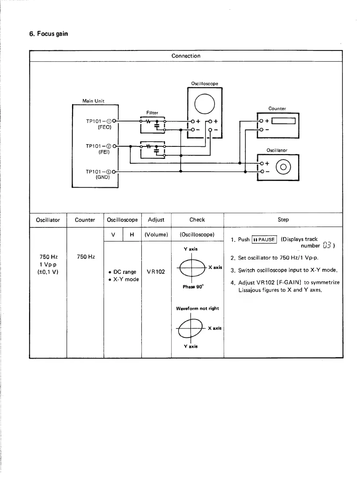 Denon DCD-1420 - Focus Gain Adjustment; VR102 Focus Gain Adjustment