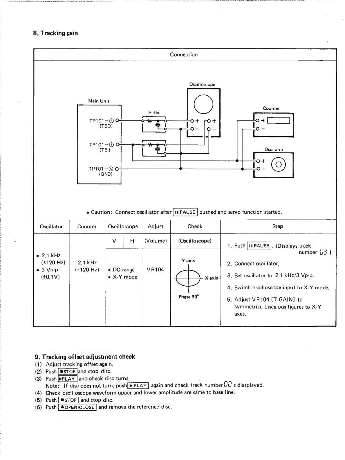 Denon DCD-1420 - Tracking Gain and Offset Check; VR104 Tracking Gain Adjustment; Tracking Offset Adjustment Check