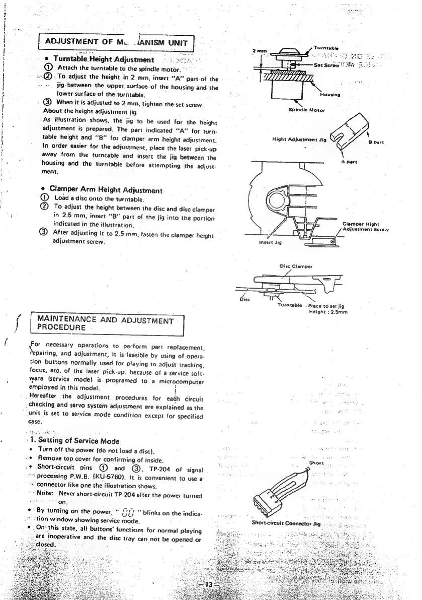 Denon DCD-1500 - Maintenance, Adjustment, and Troubleshooting; Mechanism Unit Adjustments & Service Mode