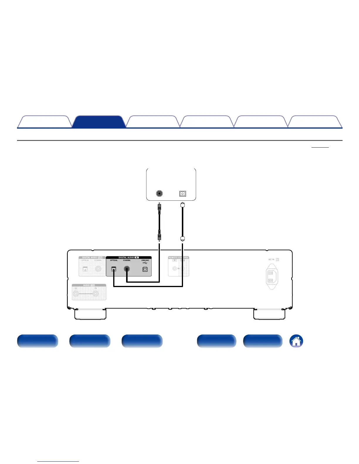 Use this connection to input digital audio signals to this unit, and convert the signals for playback using the D/A converter of this unit (vpage42).