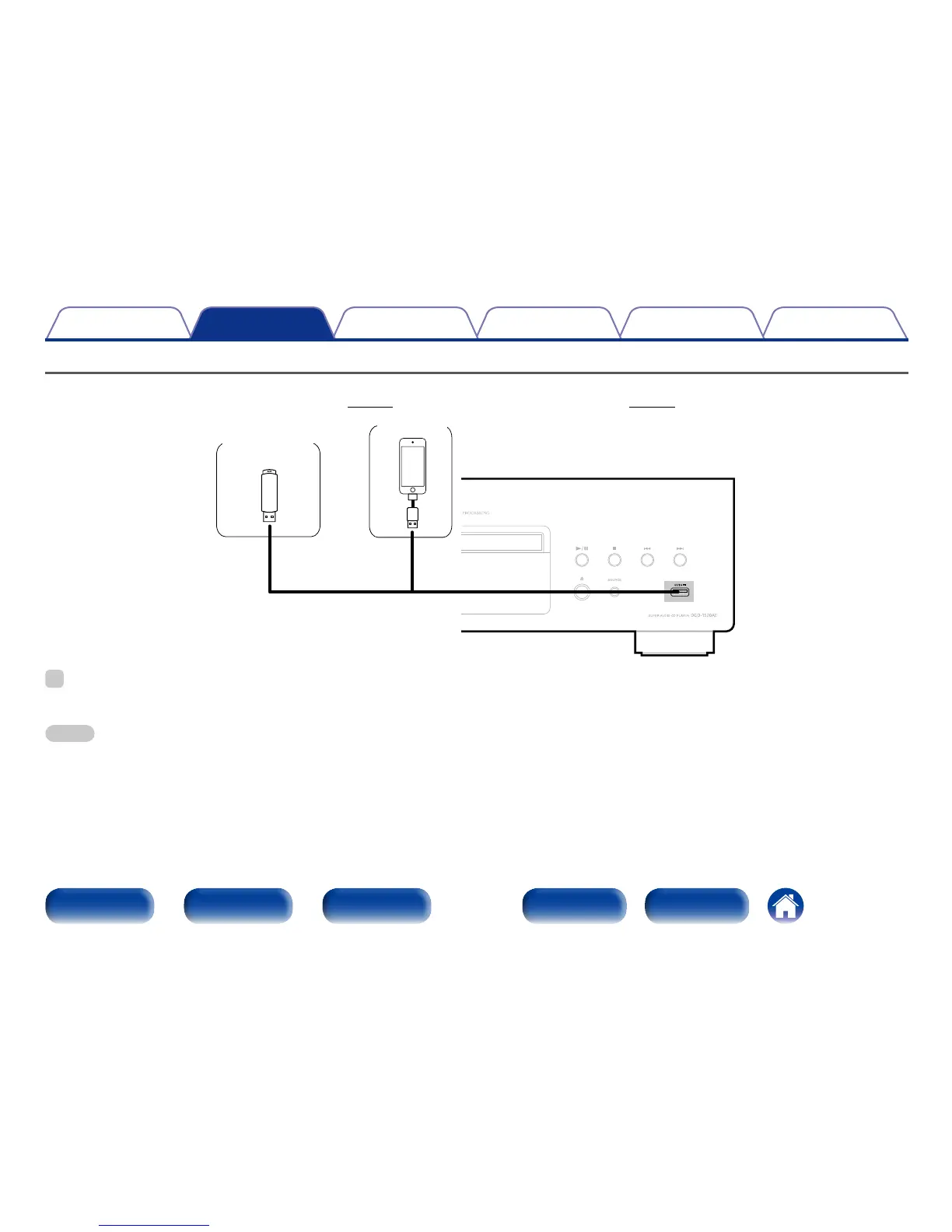 •Denon does not guarantee that all USB memory devices will operate or receive power. When using a portable USB hard disk drive (HDD) which came with an AC adapter,