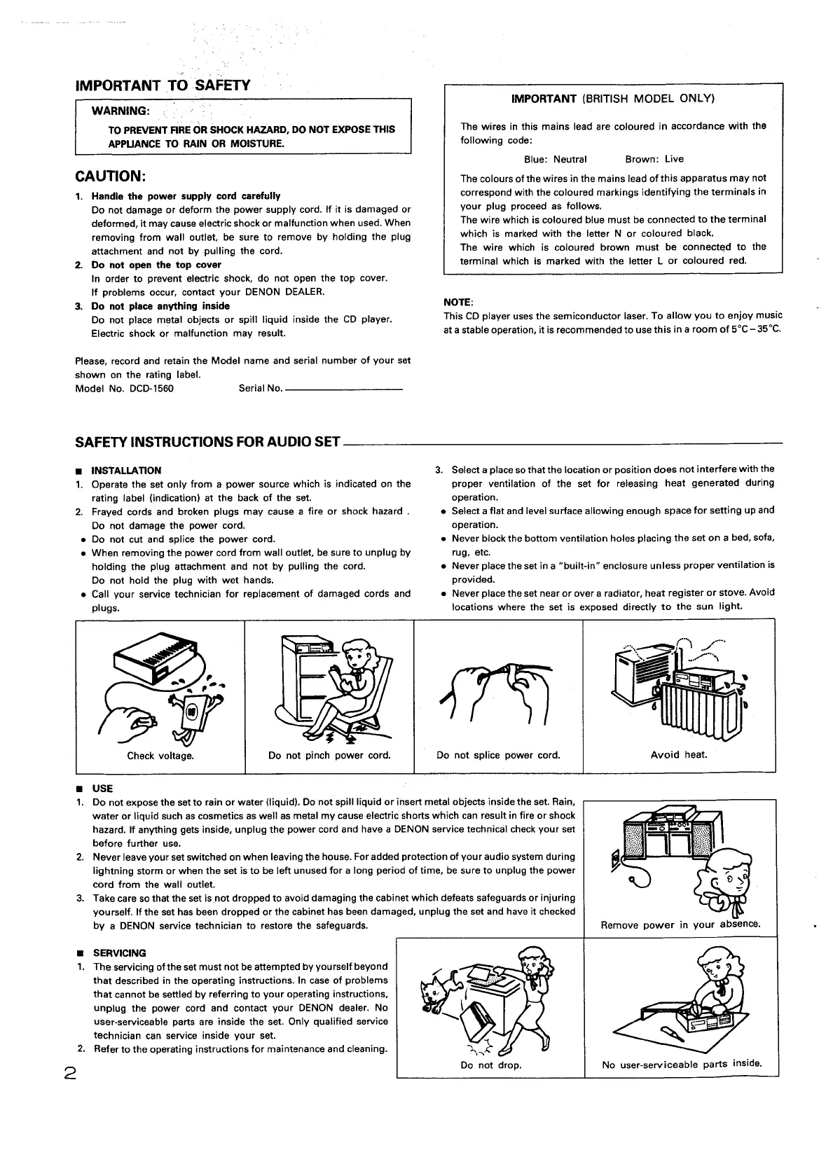 Denon DCD-1560 - Safety Instructions; Important Safety Warnings; Installation Precautions; Usage Guidelines