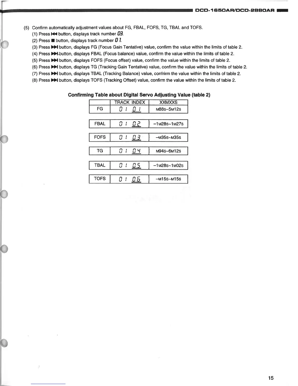 Denon DCD-1650AR - Digital Servo Adjustment Values; Confirming Servo Adjustment Parameters