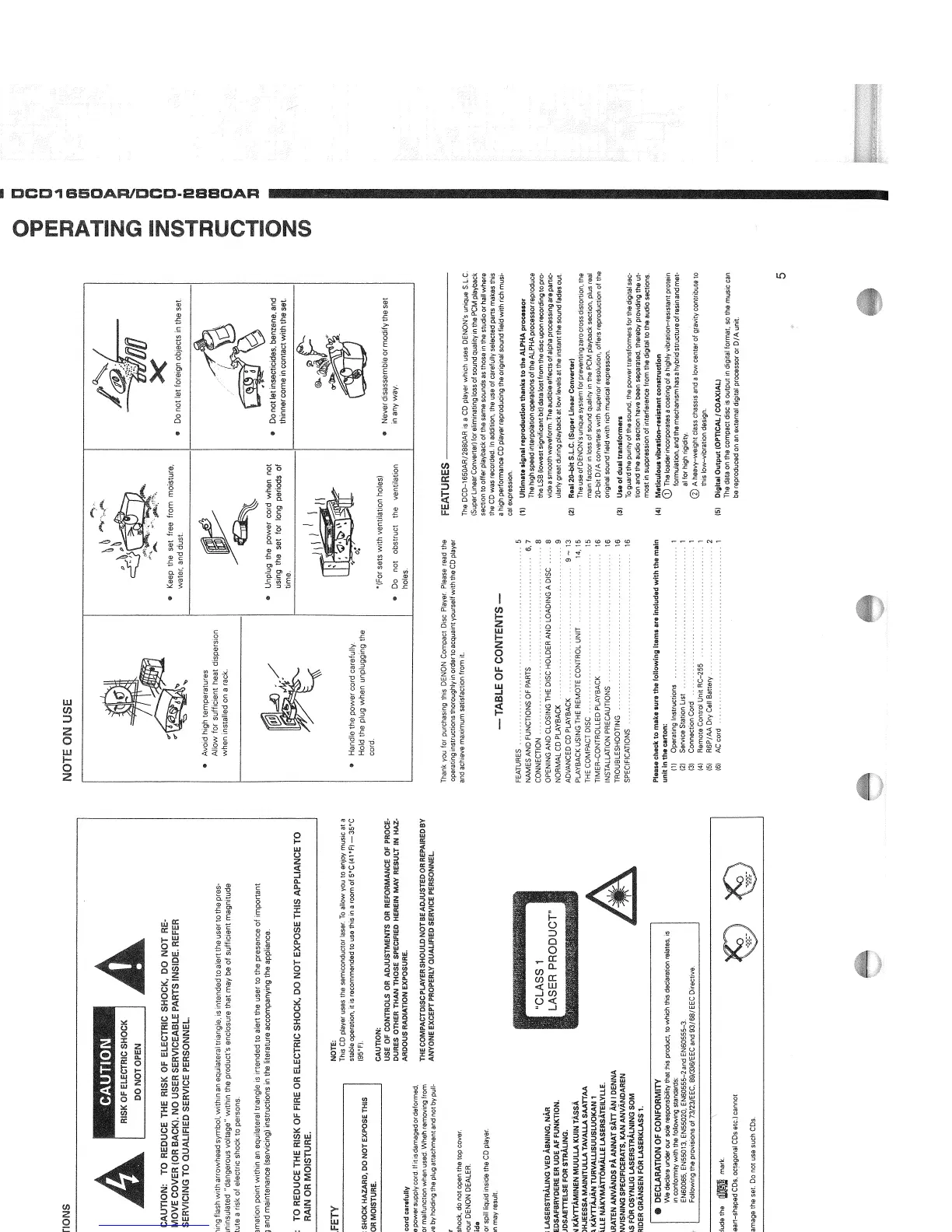Denon DCD-1650AR - Features; Operating Instructions; Important Safety