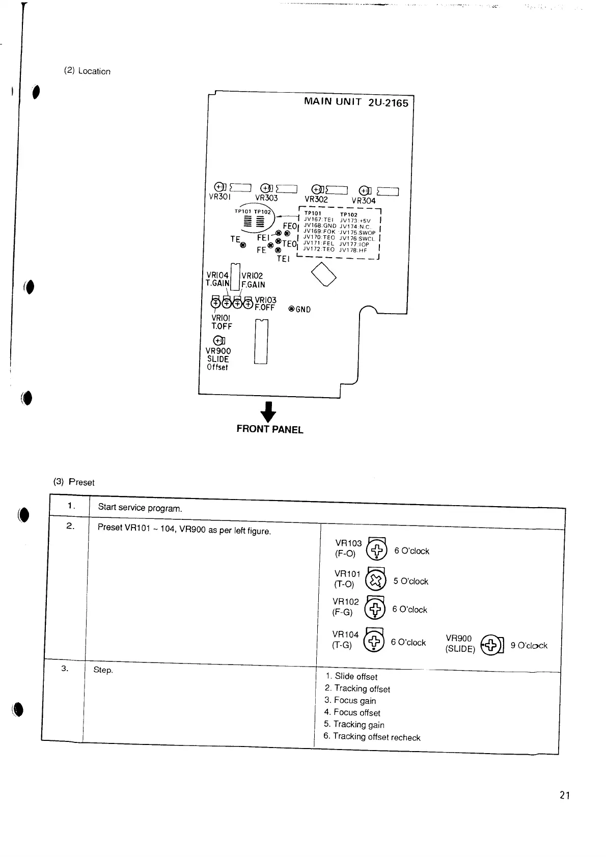 Denon DCD-2560 - Adjustment Presets and Steps; Component Location and Presets; Adjustment Sequence Steps