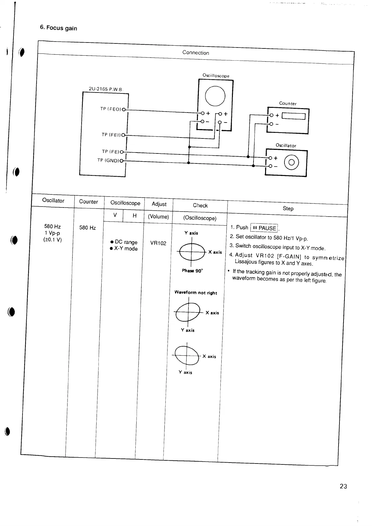 Denon DCD-2560 - Focus and Tracking Adjustments; Focus Gain Adjustment Procedure