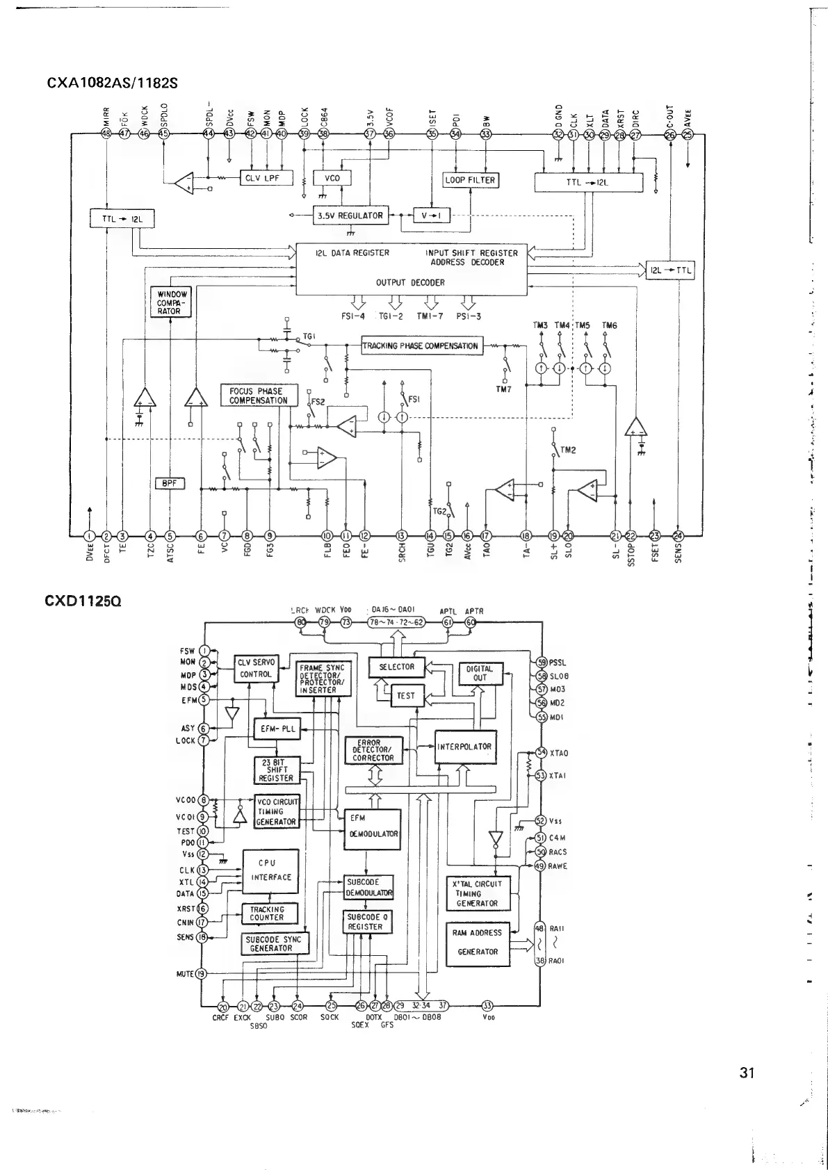 Denon DCD-3520 - CXD1125 Q IC Pinout and Block Diagram
