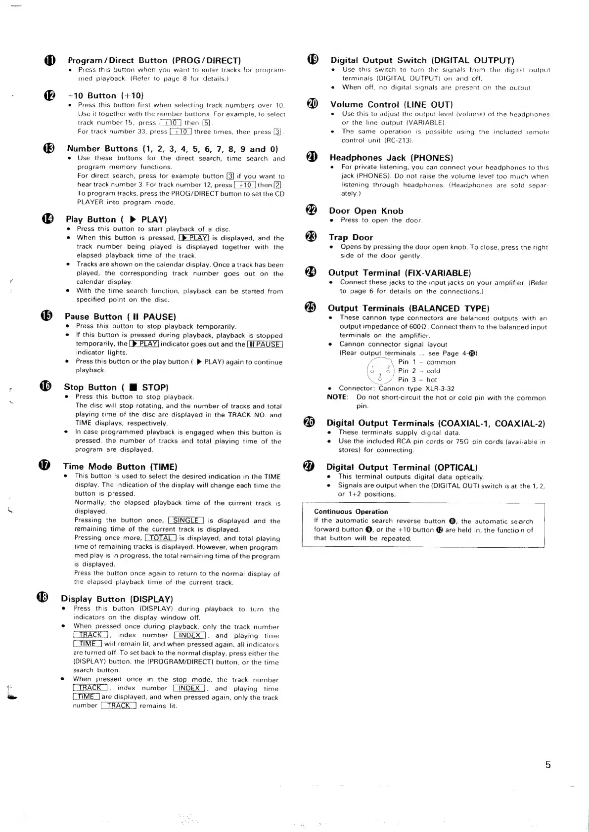 Denon DCD-3520 - Player Operation and Remote Control; Playback and Output Controls