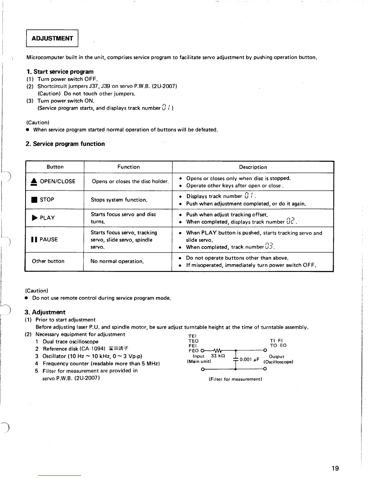 Before adjusting laser P.U. and spindle